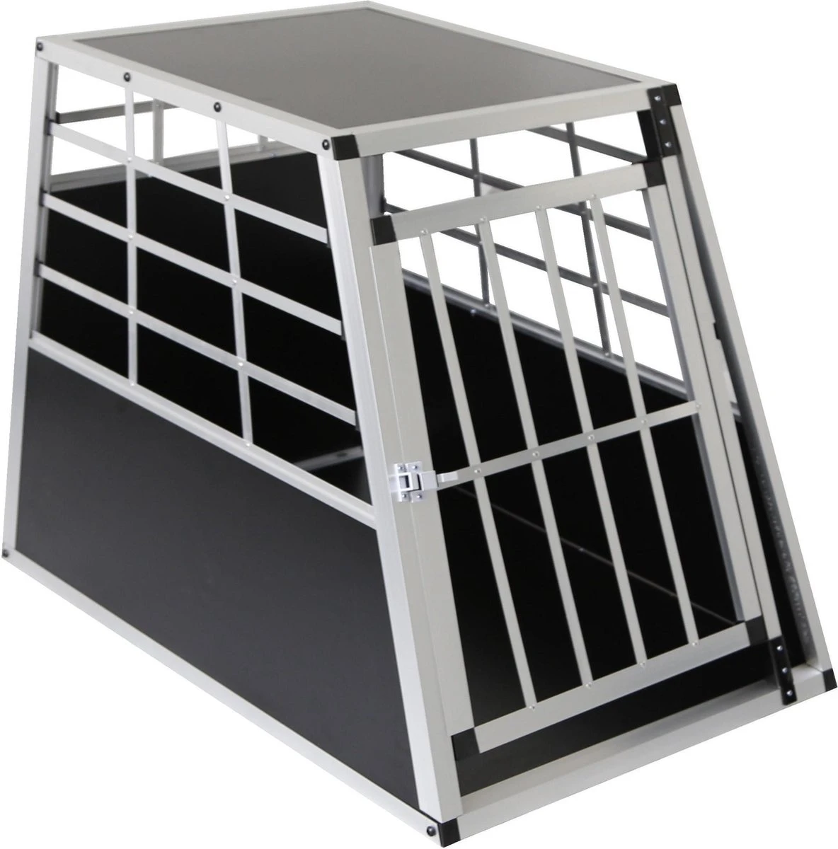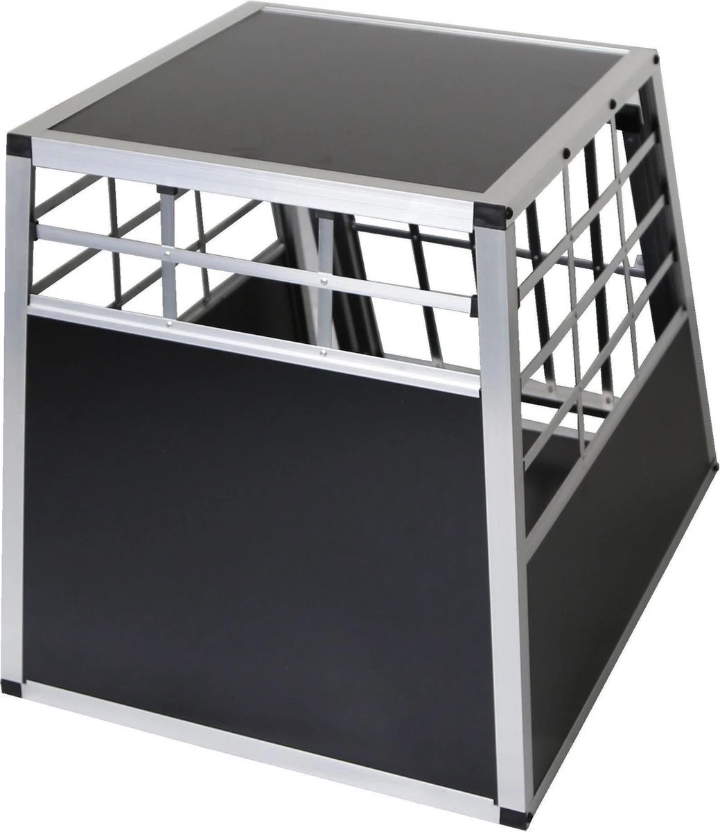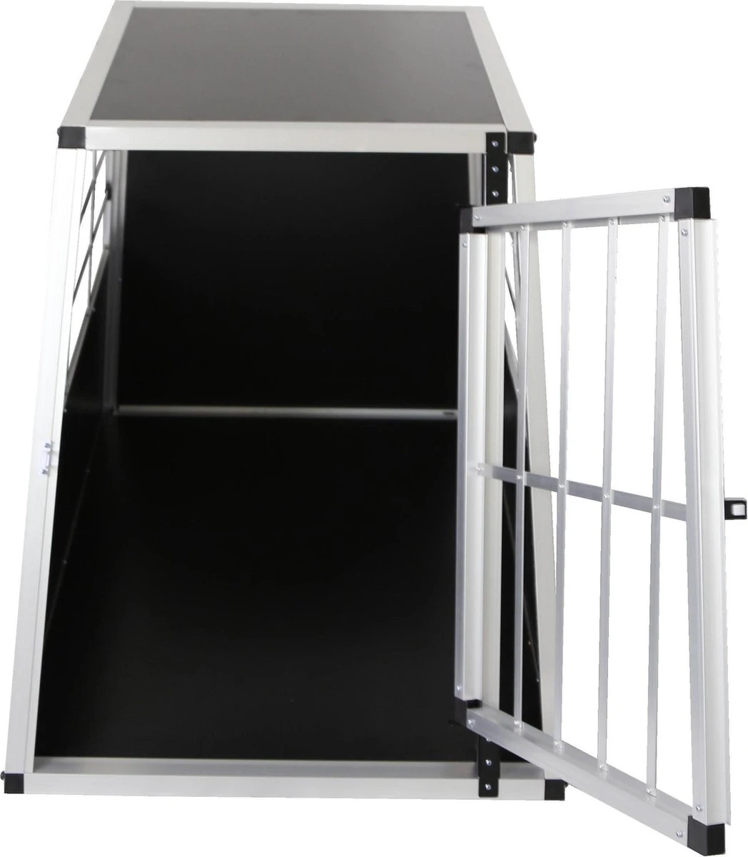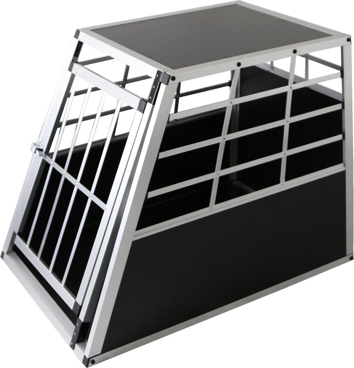Aluminium Autobench – 65 (Breedte)x90(Diepte)x69(Hoogte) cm met 1 deur. De voorkant is schuin en de achterkant is haaks. Tevens is de diepte en hoogte van de bench groter voor uw hond om te liggen, want hij is 69cm hoog en 90 cm diep. Het is een extra hoge versie die met name geschikt is voor SUV en MPV auto’s en in veel gewone auto’s te hoog is.
