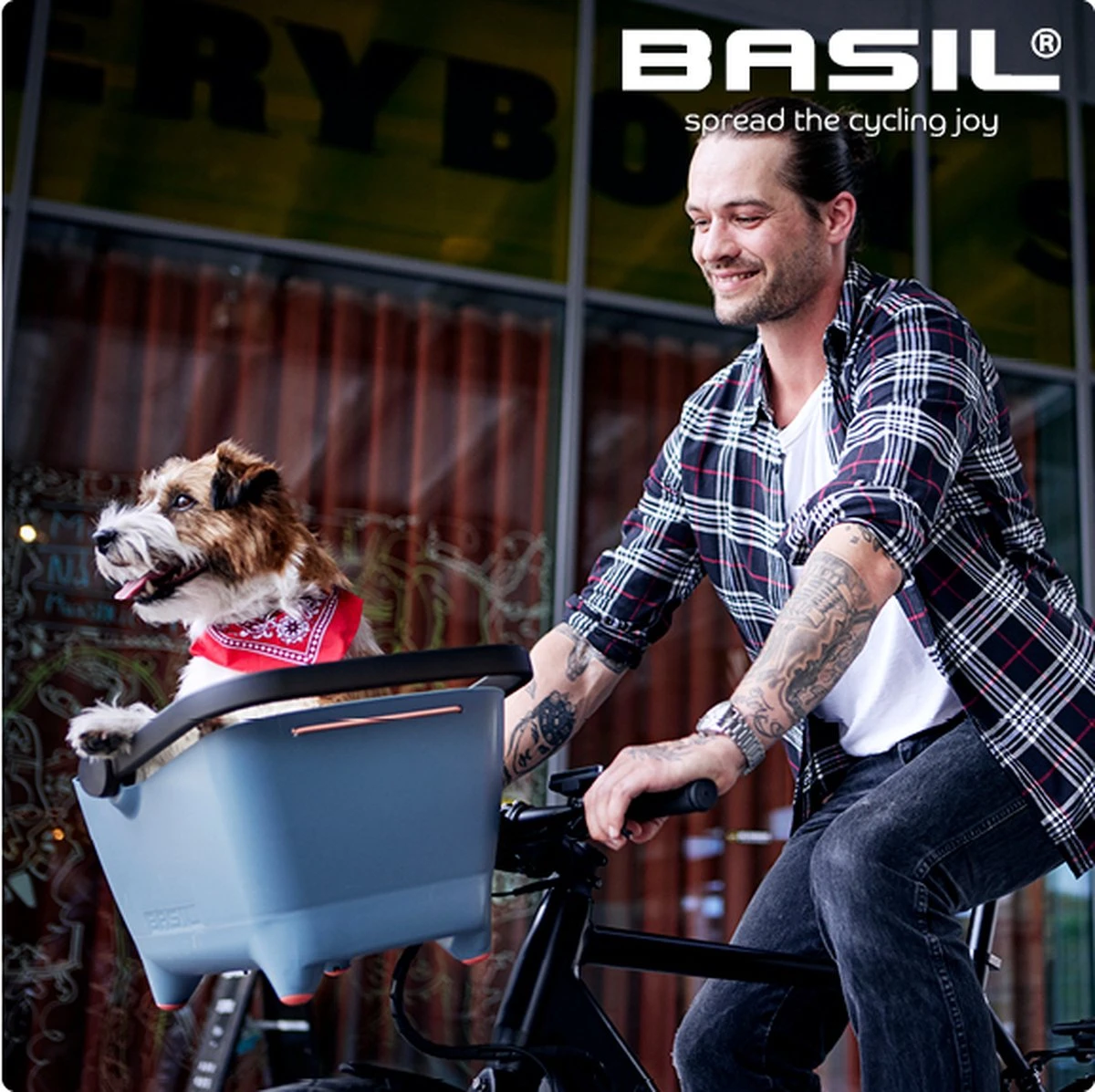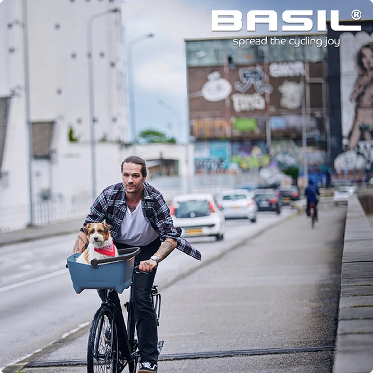 Met de Basil Buddy hondenfietsmand neem jij jouw trouwe viervoeter veilig en comfortabel mee voorop de fiets. De voormand is gemaakt van niet-giftig en milieuvriendelijk PP-plastic. Kauwproof dus! Daarnaast wordt de mand inclusief riempje geleverd, zodat je je hondje kunt veilig vastzet. Ideaal voor als je op bezoek gaat naar de dierenarts of in het drukke verkeer van de stad fietst. Je kunt de mand aanvullen met een koepel, zodat jouw viervoeter niet uit de mand springt. Dankzij het meegeleverde kussentje zit jouw buddy prinsheerlijk.