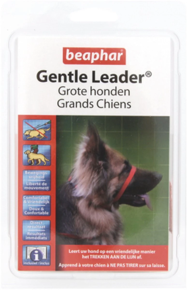 De Gentle Leader halti is een unieke hoofdhalsband die aanbevolen wordt door vele dierenartsen en hondengedragsdeskundigen. Dit is een nieuwe methode om uw hond op een vriendelijke manier te corrigeren, af te richten en onder controle te houden.