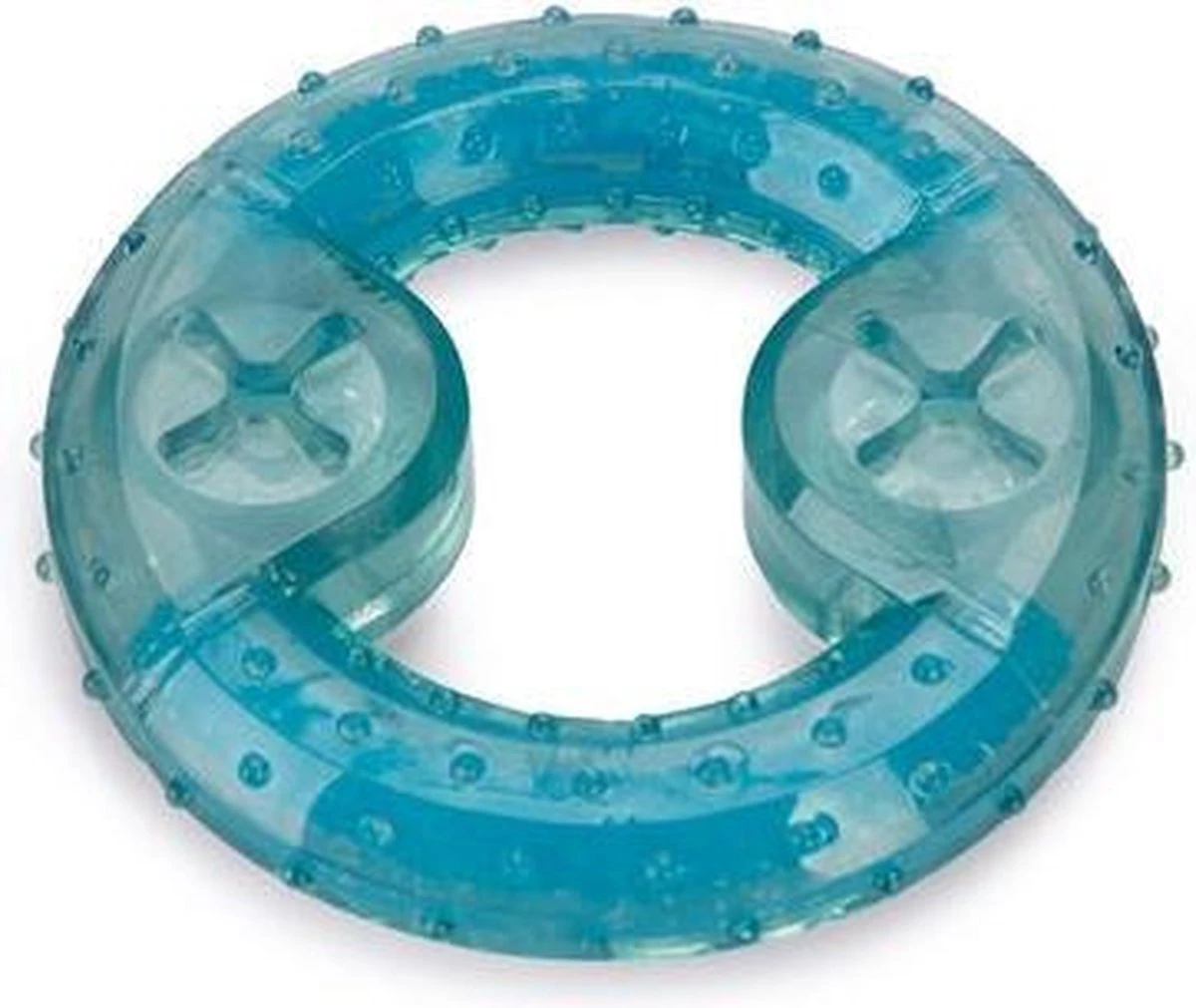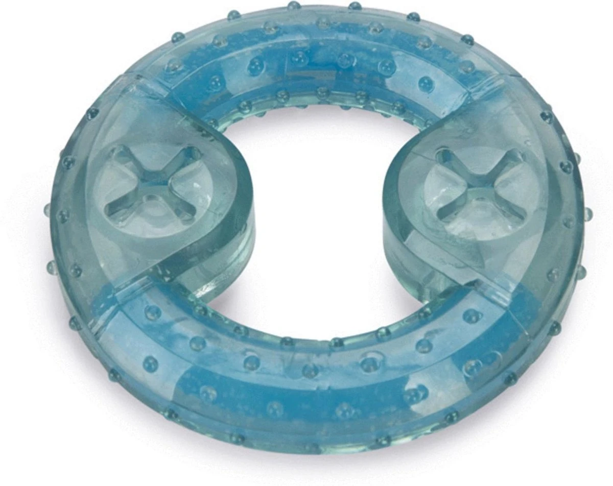 Dit leuke speelgoed in de vorm van een ring masseert het tandvlees van je puppy en het kauwen op het bot verzacht de pijn van doorkomende tanden. Je puppy kan naar hartenlust op de ring kauwen en bijten. Ook bijzonder aan deze ring, is dat je hem kan koelen in de vriezer. Zo geeft de ring verkoeling in de zomer en werkt het verzachtend bij pijn in de bek. Leg de ring ongeveer 25 minuten in de vriezer voor gebruik. Natuurlijk kan je de ring ook gewoon gebruiken om mee te spelen.