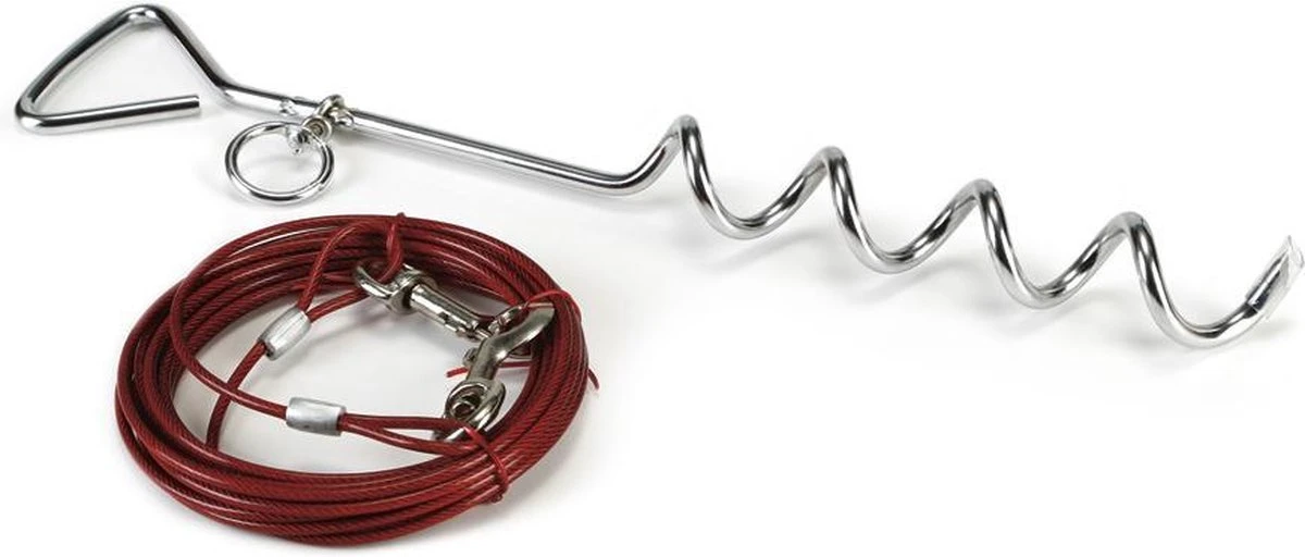 De Beeztees Camping Vastlegset is de ideale set om jouw hond of kat vast te leggen. Deze vastlegset bestaat uit een spiraal en een lijn van 6 meter. Hierdoor kan je jouw trouwe viervoeter vast leggen, maar tegelijkertijd nog wel voldoende vrijheid geven. Dit is de ideale set om te gebruiken in je tuin of op de camping. Afmeting: Spiraal: 46 cm x 8 mm, lijn: 6 meter.