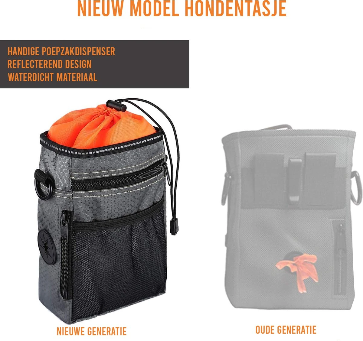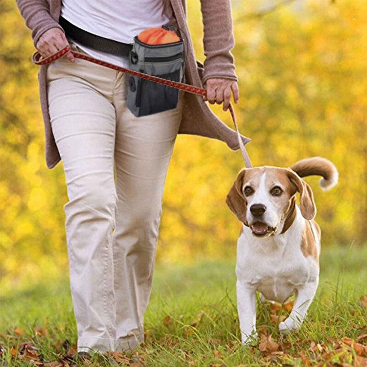 -Multifunctioneel tasje met ruimte voor hondensnoepjes.