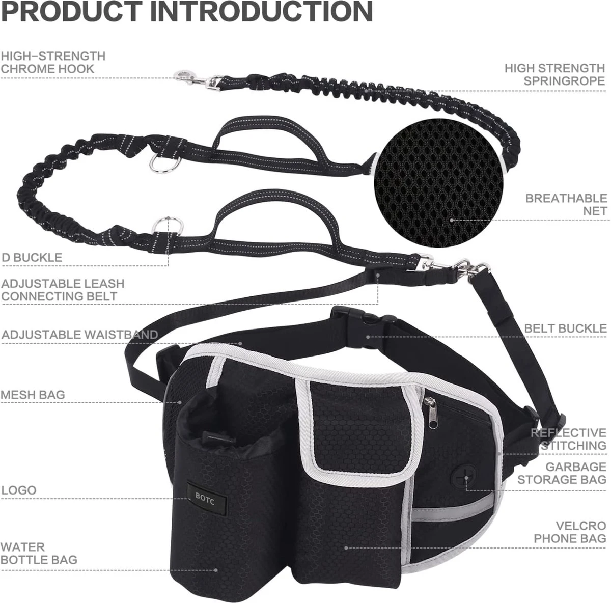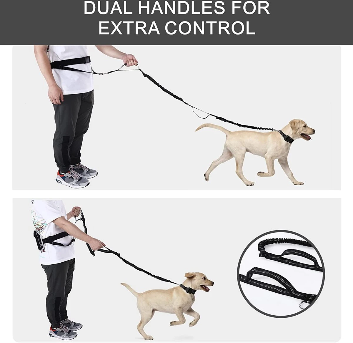 volledige controle over uw hond tijdens het joggen is belangrijk. Hoge elasticiteit en stabiliteit maken een goede hondenriem om te joggen. Het kan ook worden gebruikt als een praktische dubbele hondenriem.