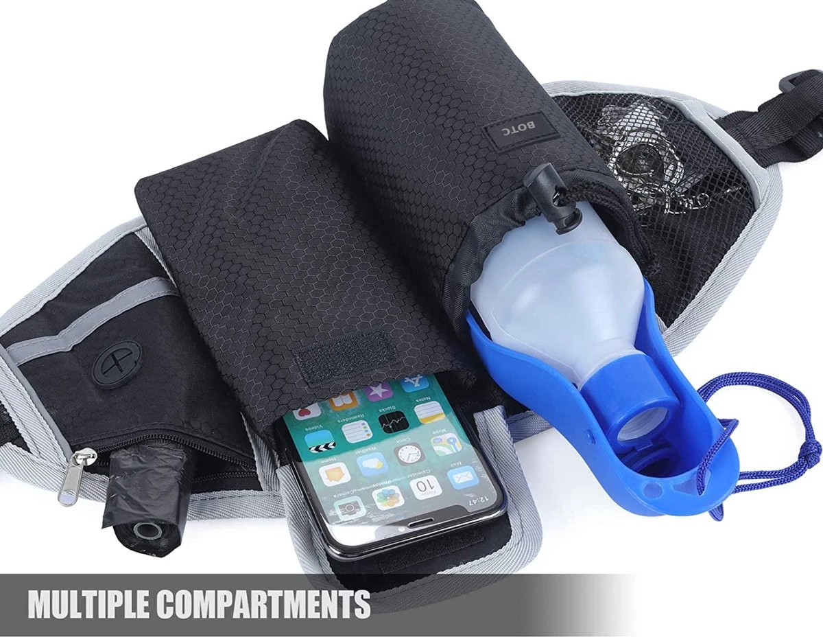 er zijn meerdere vakken die smartphones, flessen, sleutels, vuilniszakken en andere belangrijke dingen kunnen bevatten. Ideaal voor wandelen, hardlopen en joggen. Verstelbare riem (63 cm / 24,8 inch tot 122 cm / 48 inch) kan volledig worden aangepast aan de taille.