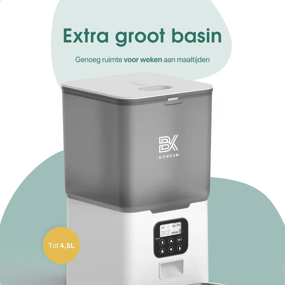 Heeft u het ook gehad om elke dag na te moeten denken wanneer u eten moet gaan geven aan uw kat en/of hond? De luxe automatische voerbak van Bowkam is de oplossing hiervoor! In deze voerautomaat kunnen op 4 verschillende momenten gedurende de dag eetmomenten ingesteld worden. Uw huisdieren zullen volop genieten van op tijd & gevarieerd eten. Door te kiezen voor Bowkam, kiest u voor een voordelig, kwalitatief en duurzaam product. Daarnaast, kunt u ons altijd bereiken en staan wij altijd voor u klaar!