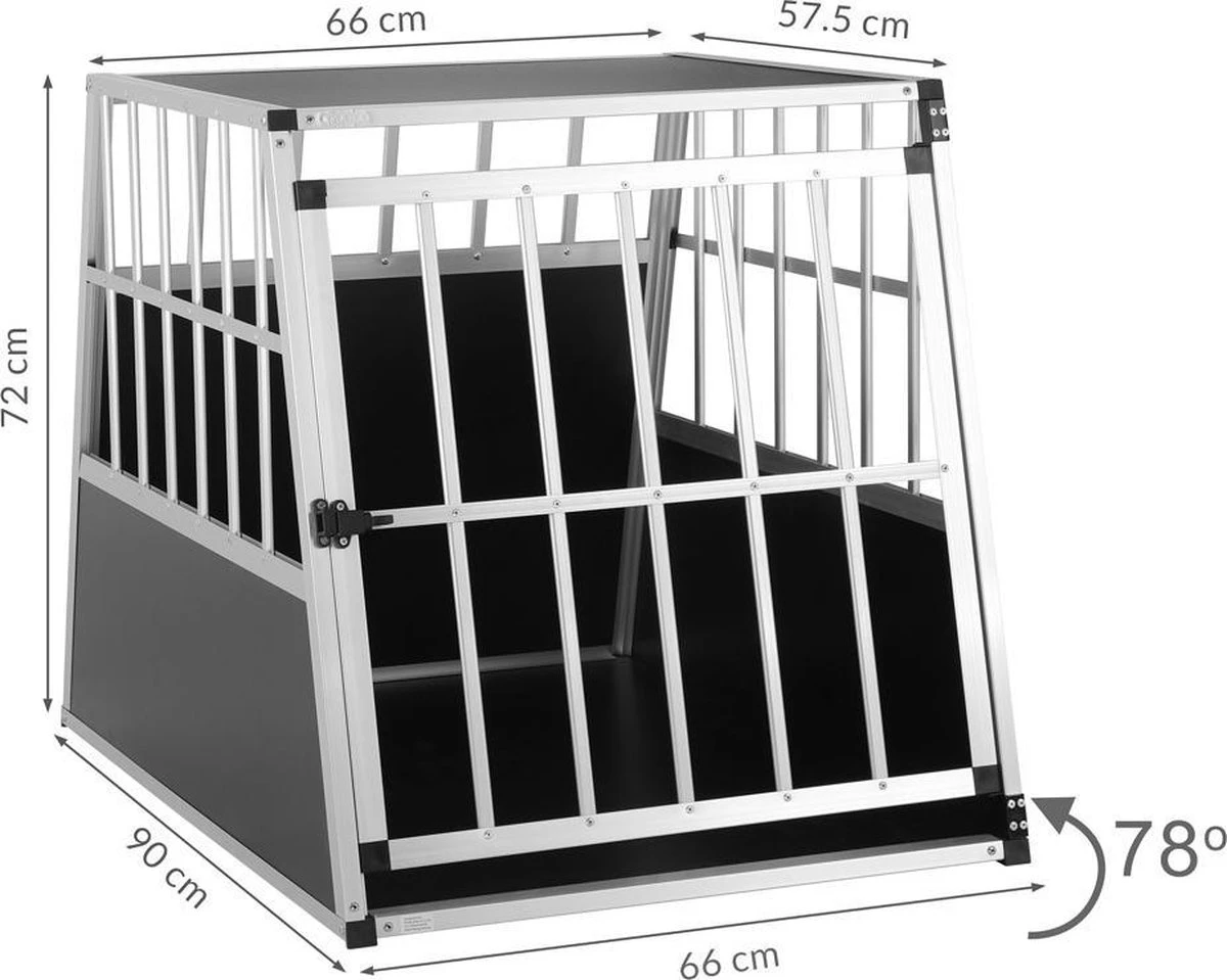 Door de schuine bouw kunnen de transportboxen eenvoudig in alle gangbare stationwagens ingebouwd worden. De stabiele kunststof hoeken minimaliseren het risico op verwonding van jouw hond of beschadiging van de box bij het dragen.