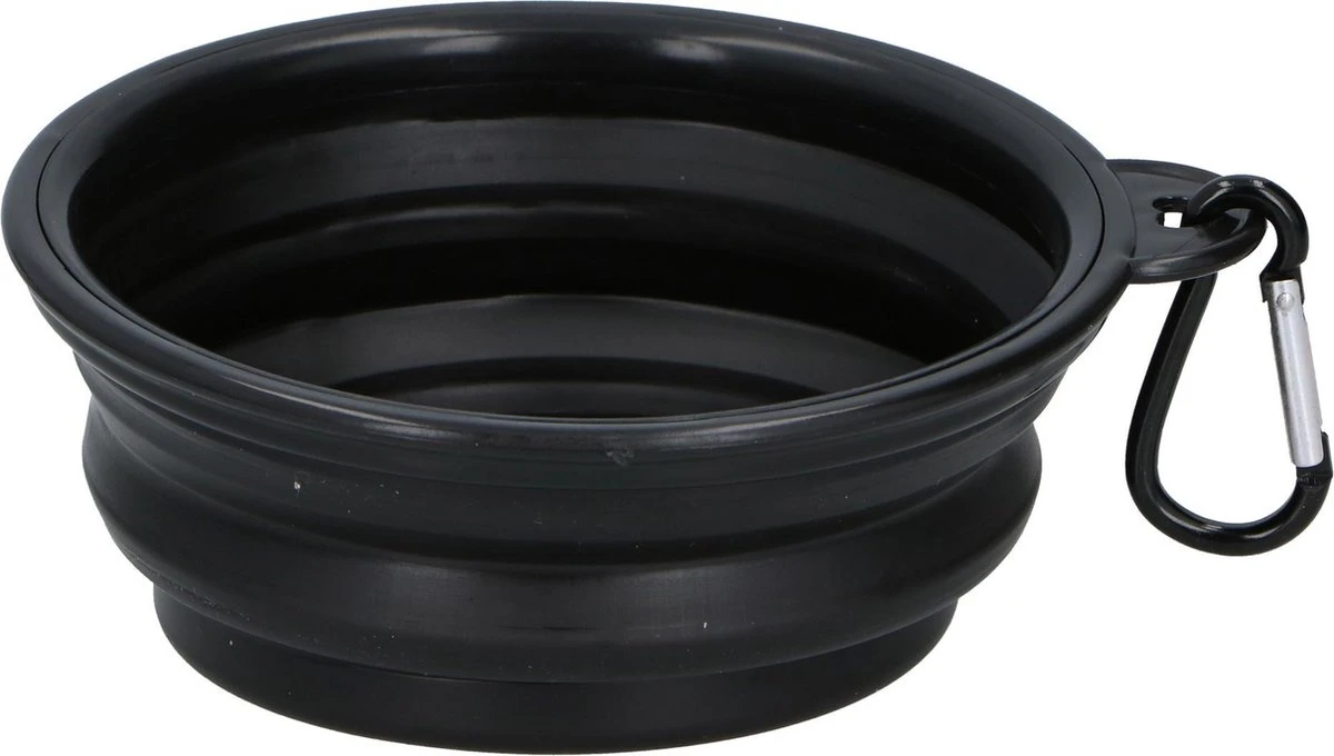 Opvouwbare drink- of voederbak geschikt voor elk huisdier! Ideaal wanneer u op reis bent, op een terrasje zit of voor een wandeling in het bos. Opgevouwd is het maar 15mm dik en met de handige karabijnhaak om deze aan uw broek of tas te bevestigen is het makkelijk het bakje overal mee naar toe te nemen zonder enige last! Gemaakt van lichtgewicht stevig siliconen. Snel, goed en makkelijk schoon te maken. Door zijn opgevouwen en compacte formaat past hij gemakkelijk in elke tas, etc.
