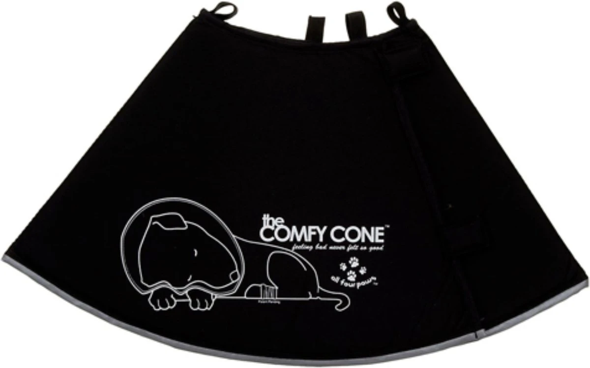 De Comfy Cone hondenkraag is een diervriendelijke zachte hondenkraag gemaakt van gelamineerd nylon over een stevige foamlaag die zacht, maar toch stevig en beschermend is. Met deze hondenkraag kan een huisdier op een verantwoorde en comfortabele manier genezen van een operatie zonder dat het dier de wond openlikt of -krabt. Kan blijven zitten tijdens het eten, wandelen en slapen. De kap geeft mee als de hond ergens tegenaan komt, waardoor spullen niet beschadigen. Hij is waterbestendig, afwasbaar en heeft een unieke reflecterende rand die de hond beschermt door zichtbaarheid te geven in het donker.