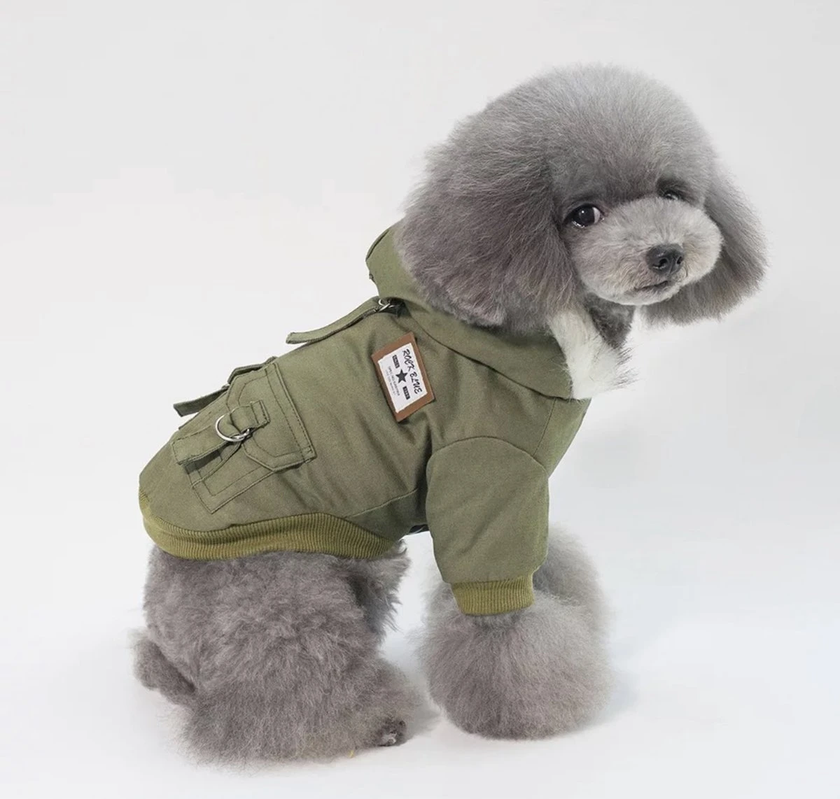 De capuchon zorgt er voor dat de kop van je hond ook warm blijft. De capuchon kun je met een drukker vastzetten als je deze niet gebruikt.