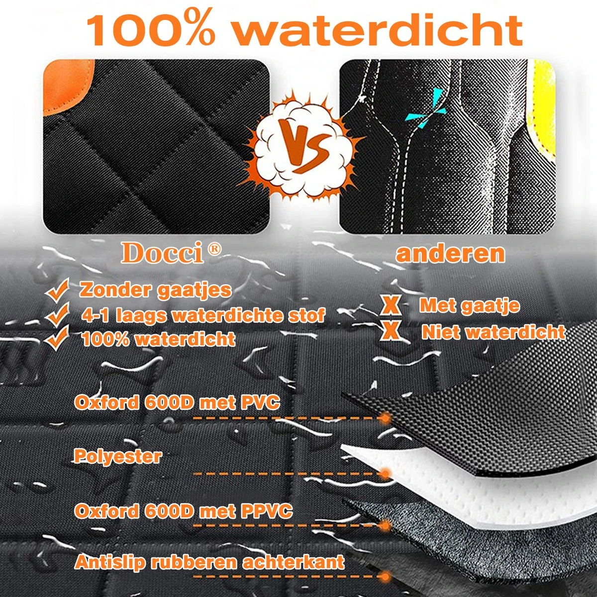 - Hoogwaardig, robuust, dik, 100% waterdicht en duurzaam en materiaal.