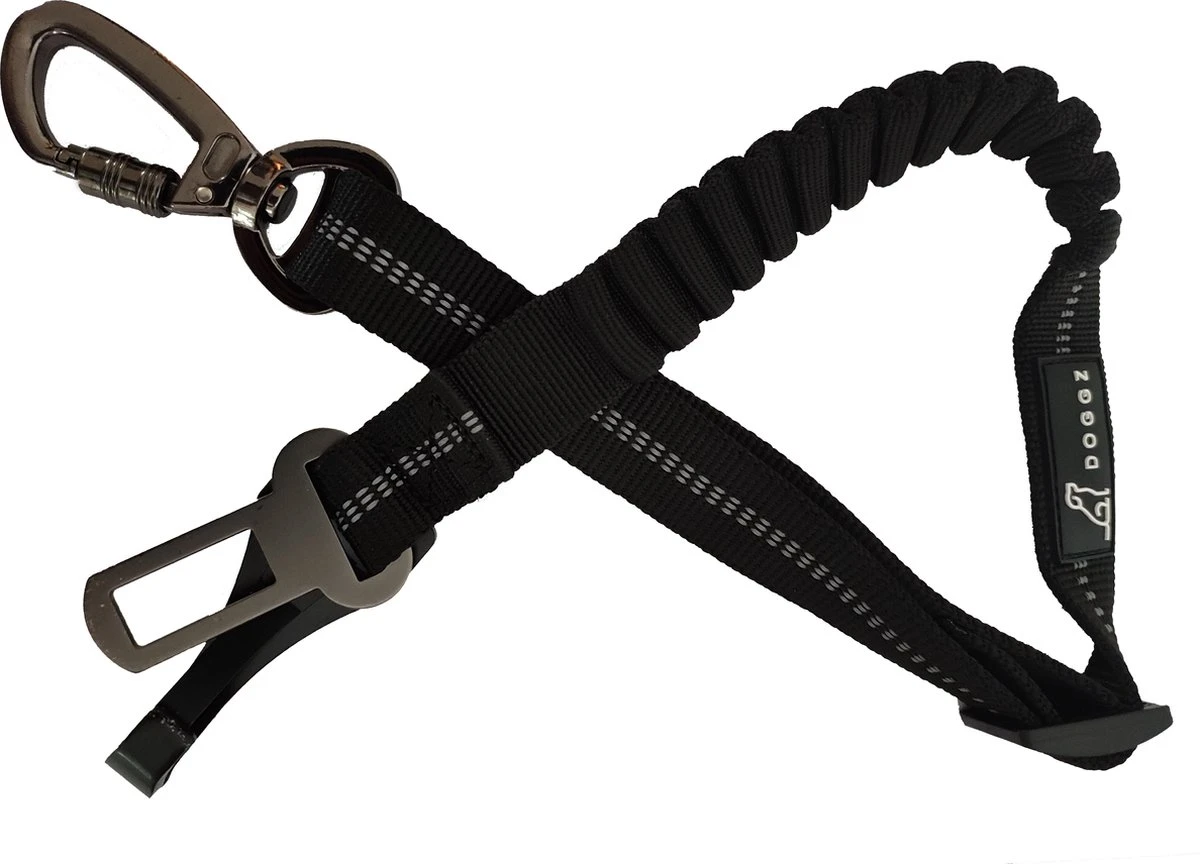 Doordat het bevestigingssysteem bestaat uit een haak en een kliksysteem, past de gordel in alle auto’s en kun je de hondenriem overal in de wagen vastmaken.