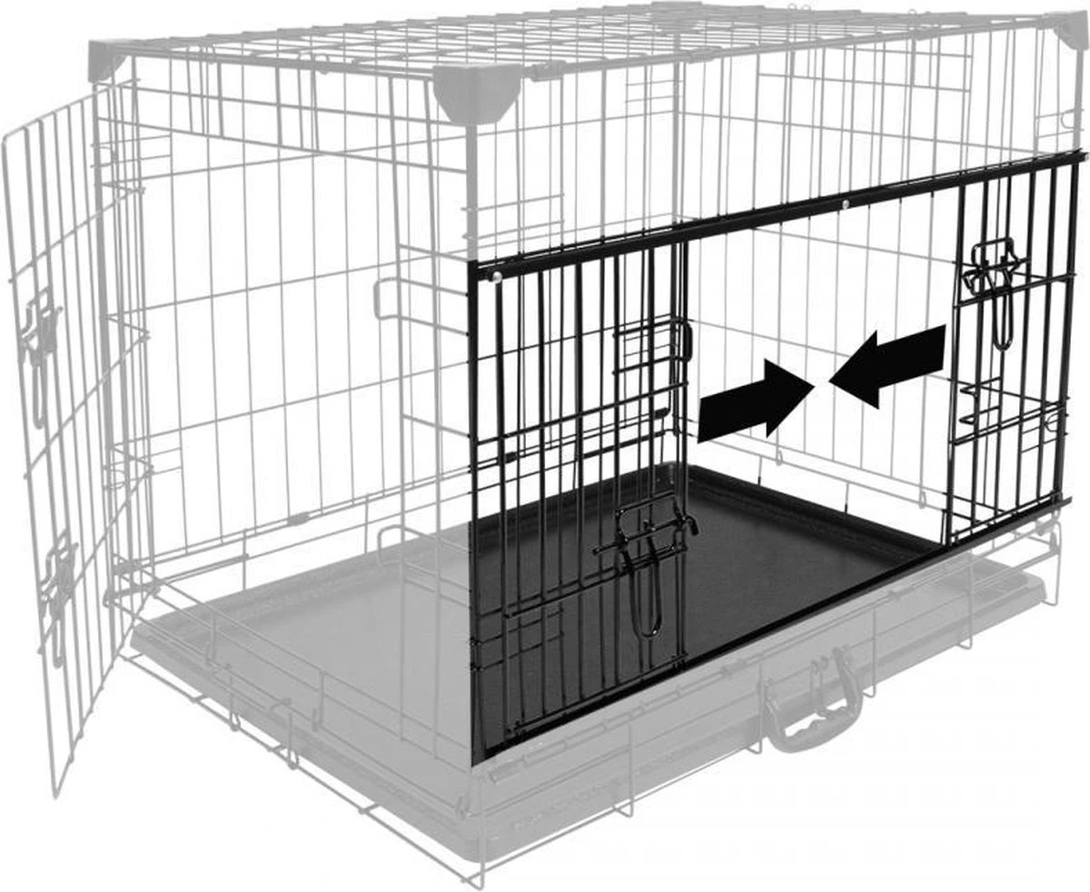 Met de Draadkooi Ninja Edition van Duvo+ haalt u een stevige en robuuste bench in huis. De bench is gemaakt van een dikkere draad dan de standaard draadkooien en heeft op alle vier de hoeken hoekbeschermers. Naast de gewone deur aan de voorkant, heeft deze bench aan de zijkant een schuifdeur. Hierdoor is deze bench ook ideaal te gebruiken in kleine ruimtes of bijvoorbeeld in de auto. Uiteraard is de kooi inklapbaar, bevat deze een handvat en een plastic uitschuiflade. Merk Duvo+ Samenvattend Extra sterke draadkooi/bench door de 4 hoekbeschermers en dikkere draad Beschikt naast een standaard deurtje ook over een schuifdeur Eenvoudig in te klappen en op te bergen Maatvoering hondenbench