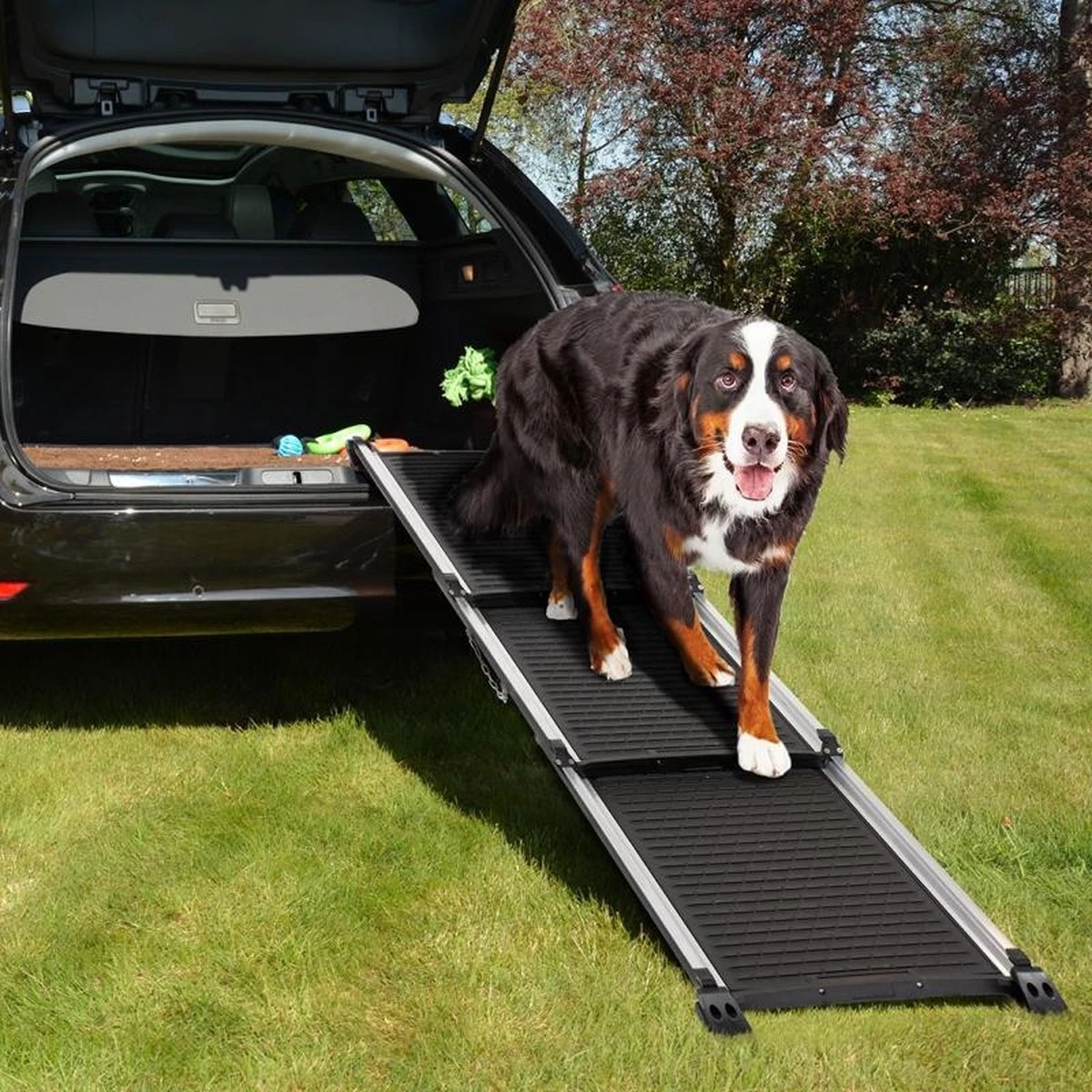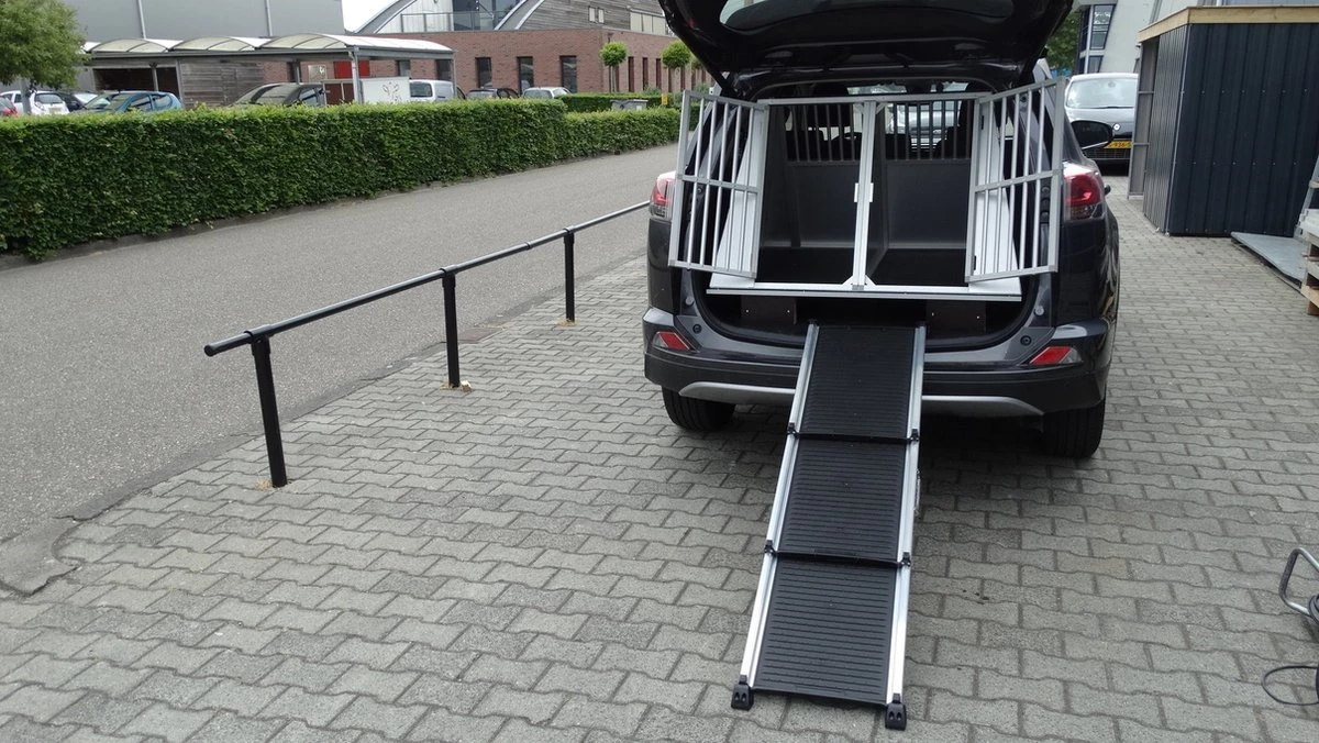 Deze super lichtgewicht aluminium hondenloopplank helpt u bij het voorkomen van klachten bij uw hond en bij uzelf. Het is erg slecht voor uw rug om steeds uw hond om te pakken en deze in de auto te zetten. Een oudere hond kan moeite hebben om de autobench in te komen. Sommige honden vinden dit ook eng. Om uw hond en u te helpen, hebben wij nu deze telescopische loopplank in ons assortiment opgenomen.
