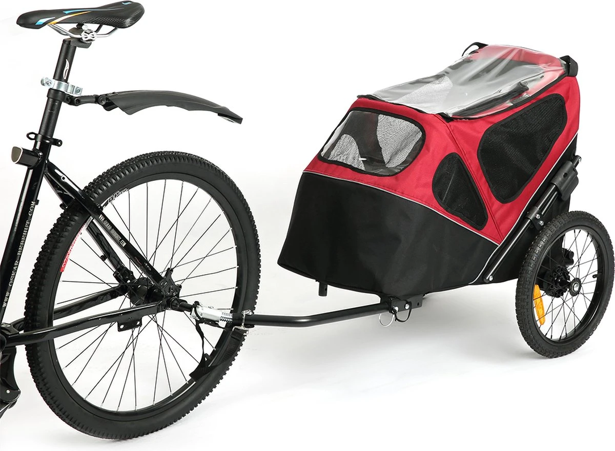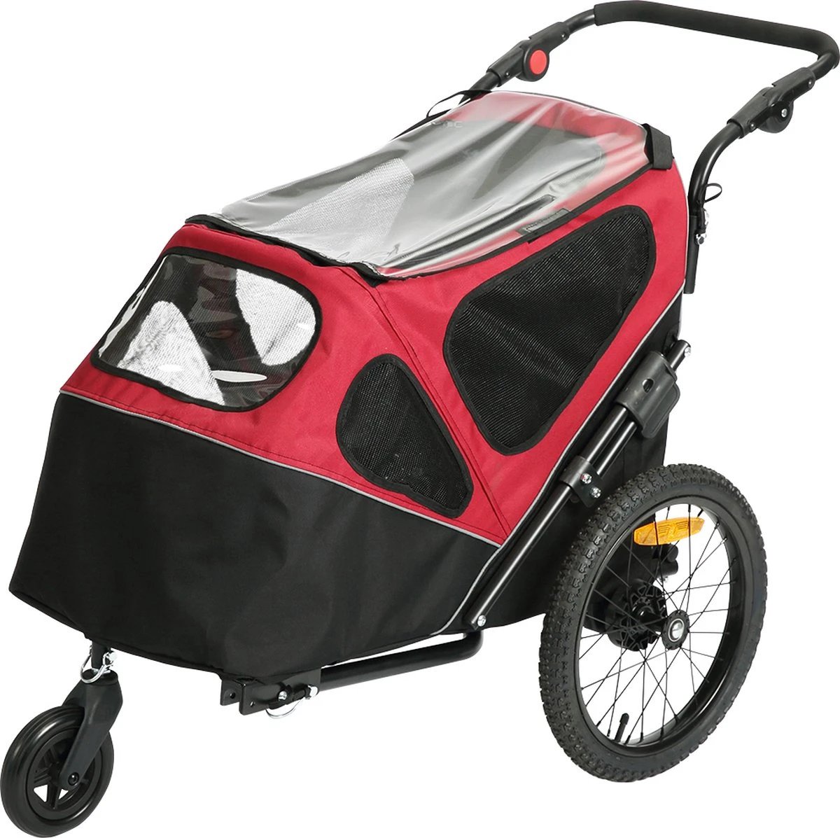 Duvo Pet Trailer – Fietskar – Hondenbuggy – 2-in-1 – Zwart/rood – 123x62x96cm