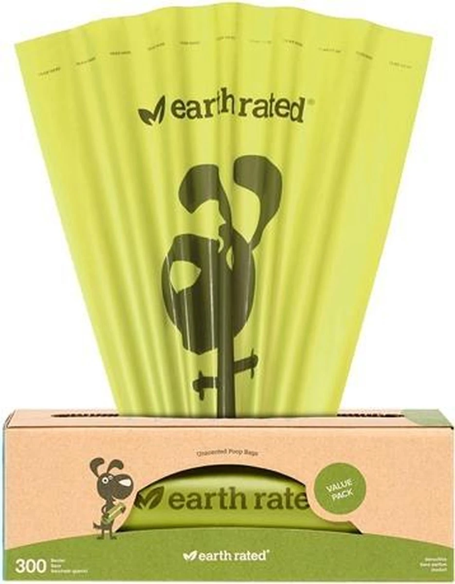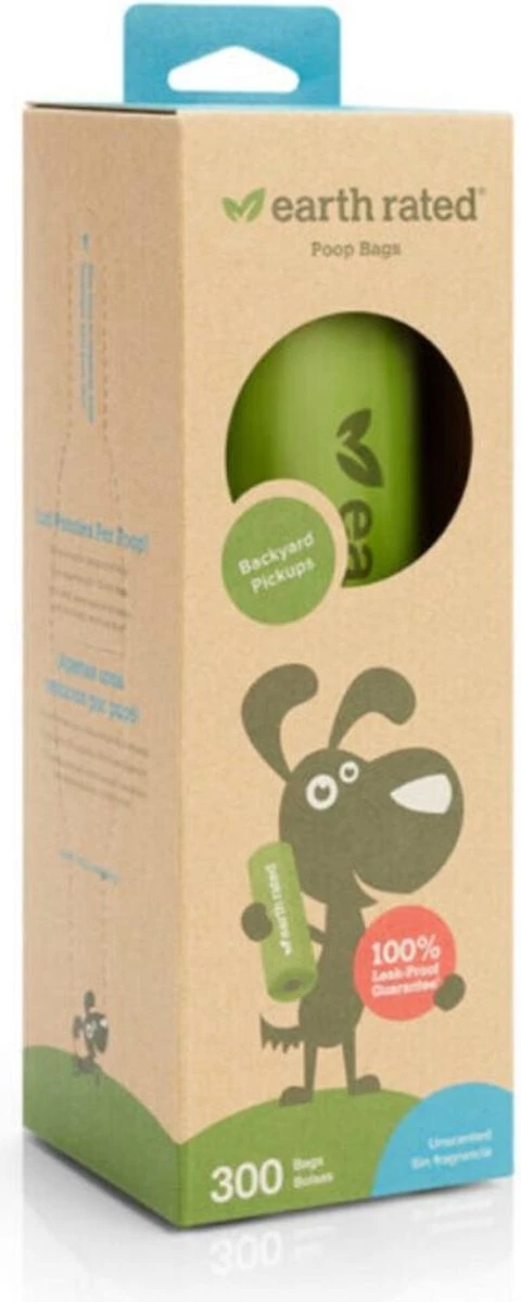 De Earth Rated Poepzak Geurloos 300 stuks zijn 300 poepzakjes op één grote rol, 100% lek-proof en met doos die fungeert als houder. Perfect voor het oppakken van poep in de tuin! De zakjes zijn extra lang en extra stevig om je handen schoon te houden. Ideaal voor huishoudens met veel honden of mensen die de honden hun behoefte in de tuin laten doen! De doos fungeert als houder waaruit je de zakjes gemakkelijk kunt pakken, net als een tissue-doos. Deze zakjes zijn zo gemaakt dat zij biologisch afbreekbaar zijn: binnen twee jaar zijn de zakjes volledig afgebroken. Zo draag je ook jouw steentje bij aan een beter milieu!