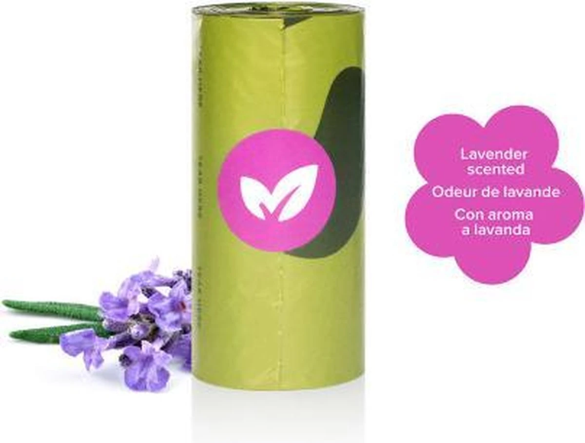 De Earth Rated Afvalzak Lavendel 21 x 15 stuks zijn 15 poepzakjes op 21 rollen, 100% lek-proof, met lavendel-geur en geleverd in recyclebare verpakking. Ideaal voor huishoudens met veel honden! De poepzakjes extra dik om geurtjes en lekkage te voorkomen. Met lekkere lavendel-geur en deze zakjes zijn zo gemaakt dat zij biologisch afbreekbaar zijn: binnen twee jaar zijn de zakjes volledig afgebroken. Zo draag je ook jouw steentje bij aan een beter milieu!