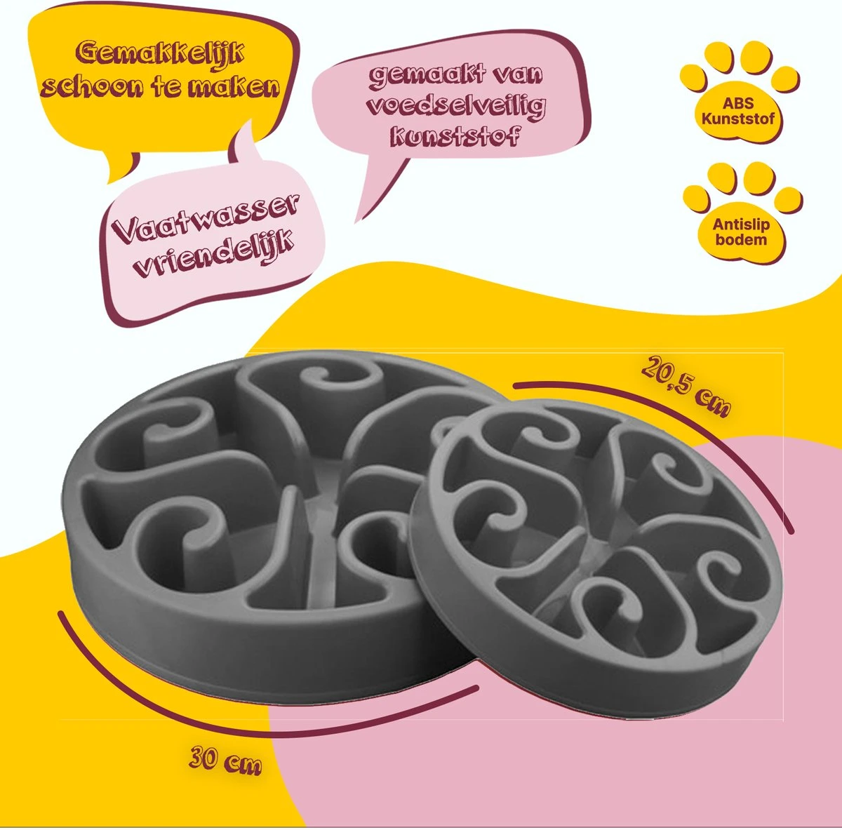 Eat Slow Live Longer Original Voerbak – Anti-schrok Voerbak – Slow Feeder Voor Honden – Anti-slip – Grijs – Ø20,5 Cm – Small/Medium – Geschikt Voor Kleine En Middelgrote Honden