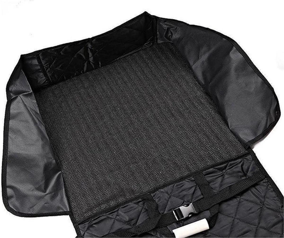Zoals je hebt gezien in onze afbeeldingen, gebruiken we kwalitatief, gelaagd, krasbestendig en waterdicht materiaal met een stevige anti-sliplaag. In combinatie met de instophendel en zijflappen blijft het hondendeken altijd op zijn plaats en komt er geen druppeltje water aan je dure autozetels!