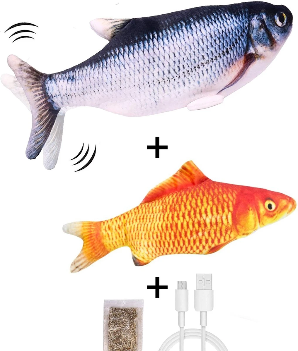 Met dit geweldige elektrische kattenspeeltje heeft je kat urenlang speelplezier! Door de slimme sensor gaat de elektrische vis automatisch dansen bij beweging en na 60 seconden gaat de vis automatisch tijdelijk op slaapstand gaan zodat de batterij extra lang mee gaat. Een gratis zakje kattenkruid is toegevoegd om het product nog interessanter te maken voor je kat. Bovendien is aan de elektronische vis een extra gratis goudvis toegevoegd (zonder motor, maar met kattenkruid in de voering). Hiermee kan je kat eerst rustig wennen of je kunt de goudvis gebruiken ter afwisseling. De beide vissen zijn geschikt voor katten van alle leeftijden.