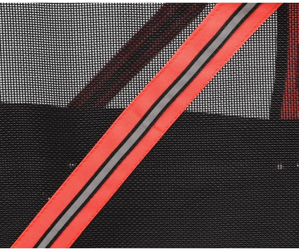 Deze hondenfietskar maakt het mogelijk om lange ritten te maken met jouw hond. De fietskar is voorzien van twee wielen met reflectoren en kan eenvoudig worden gekoppeld aan de meeste fietsen. Deze kar voor honden en andere huisdieren heeft een mooie zwart/rood kleur en is voorzien van reflectie strepen waardoor de kar goed opvalt op donkere dagen. Ook is hij voorzien van een vlag welke je nog meer laat opvallen. Jouw hond kan eenvoudig in de kar gezet worden door dat de voorzijde bijna helemaal open te ritsen is. Ook is hij voorzien van veel ventilatie gaas, dit bevorderd niet alleen de luchtcirculatie, het maakt het ook mogelijk voor jouw huisdier om alles in de gaten te houden onderweg. In de winter kun je de fietskar netjes opbergen door hem gedeeltelijk in te klappen.