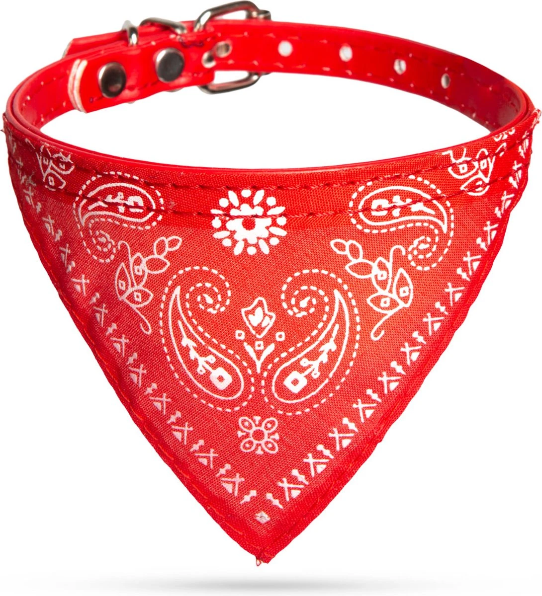 Stoere rode bandana voor kleine hond of kat. De kleurrijke sjaal ziet er goed uit bij de meeste hondenrassen, maar wordt aanbevolen voor (bijv.: chihuahua, yorkie, teckel, westie) Naast de trendy look is de sjaal ook praktisch, doordat aan de ingebouwde halsband een riem kan worden bevestigd.