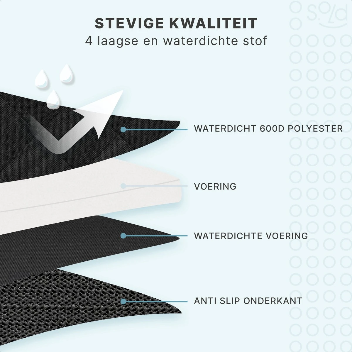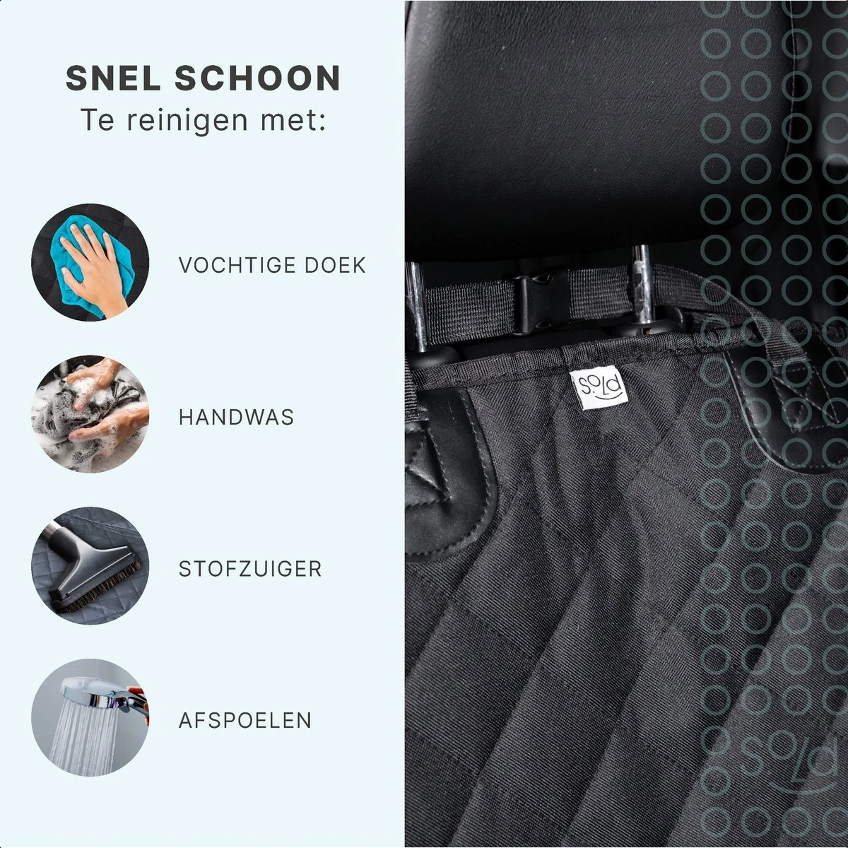 Deze stevige en waterdichte autostoel beschermhoes van S.old beschermt je (bijrijders)stoel tegen vuil, water en beschadiging. Hij is eenvoudig te bevestigen en blijft goed op zijn plaats zitten door de antislip bodem. De hoes is geschikt voor alle type auto’s.