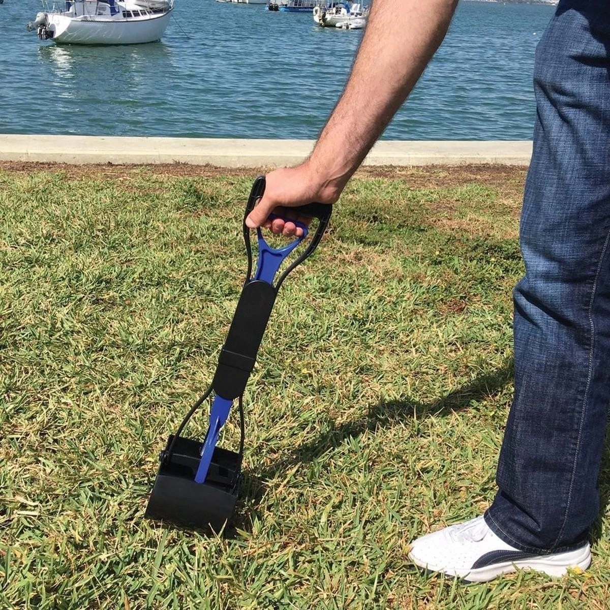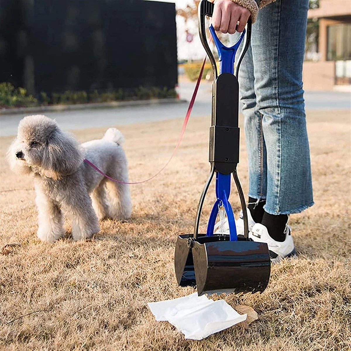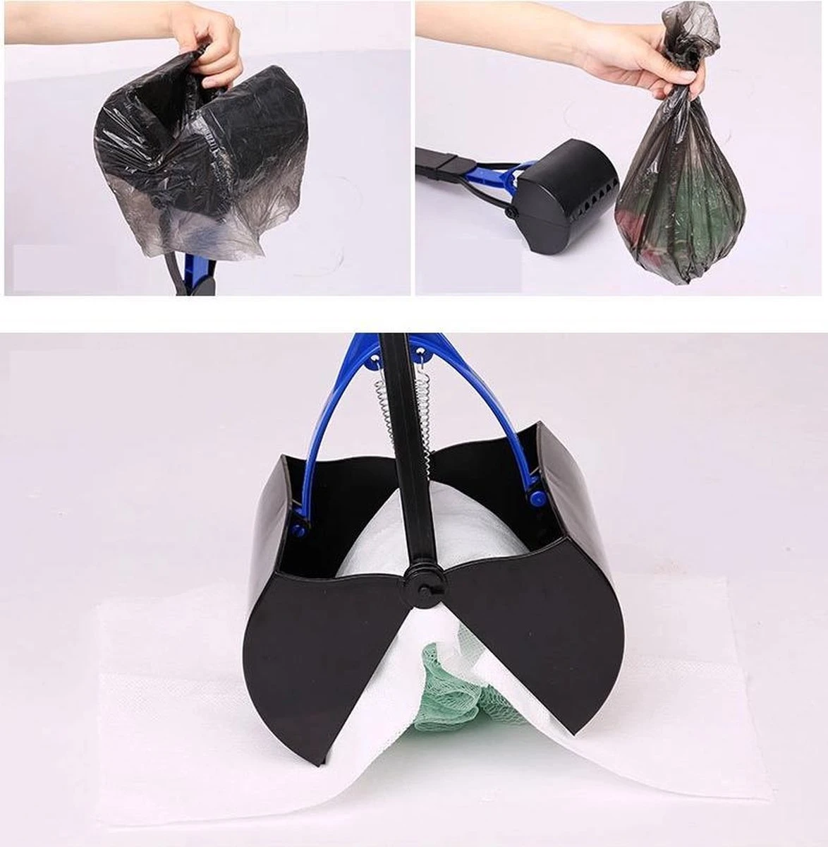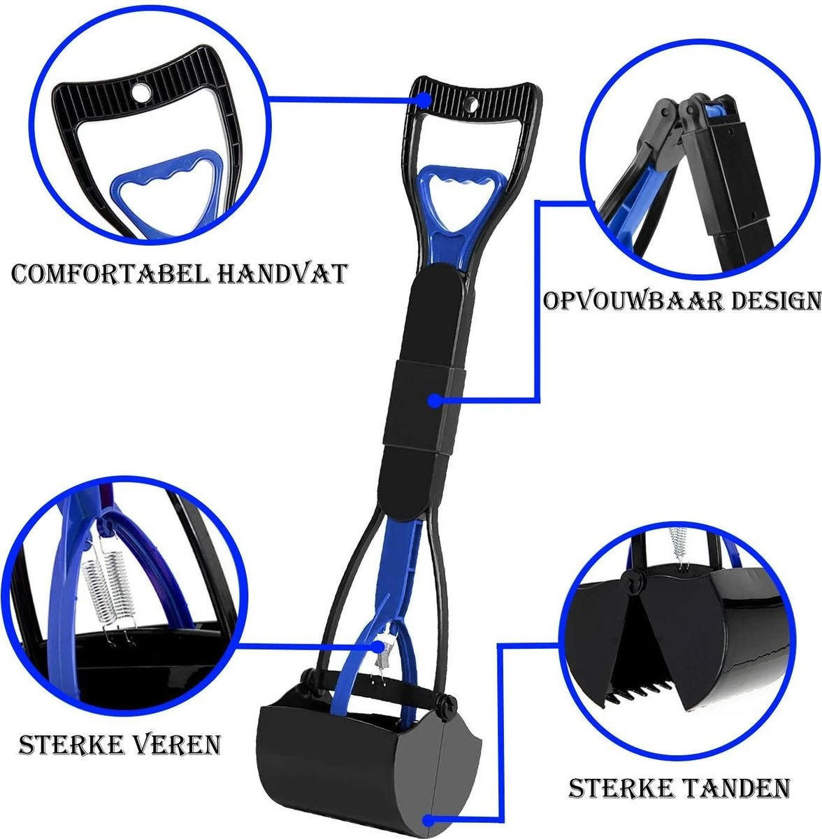 De hondenpoepschep is gemakkelijk in gebruik. Vouw hem uit doe een hondenpoepzakje in de opening en pak de poep van de grond. Knoop het zakje dicht en gooi de hondenpoep in de prullenbak.