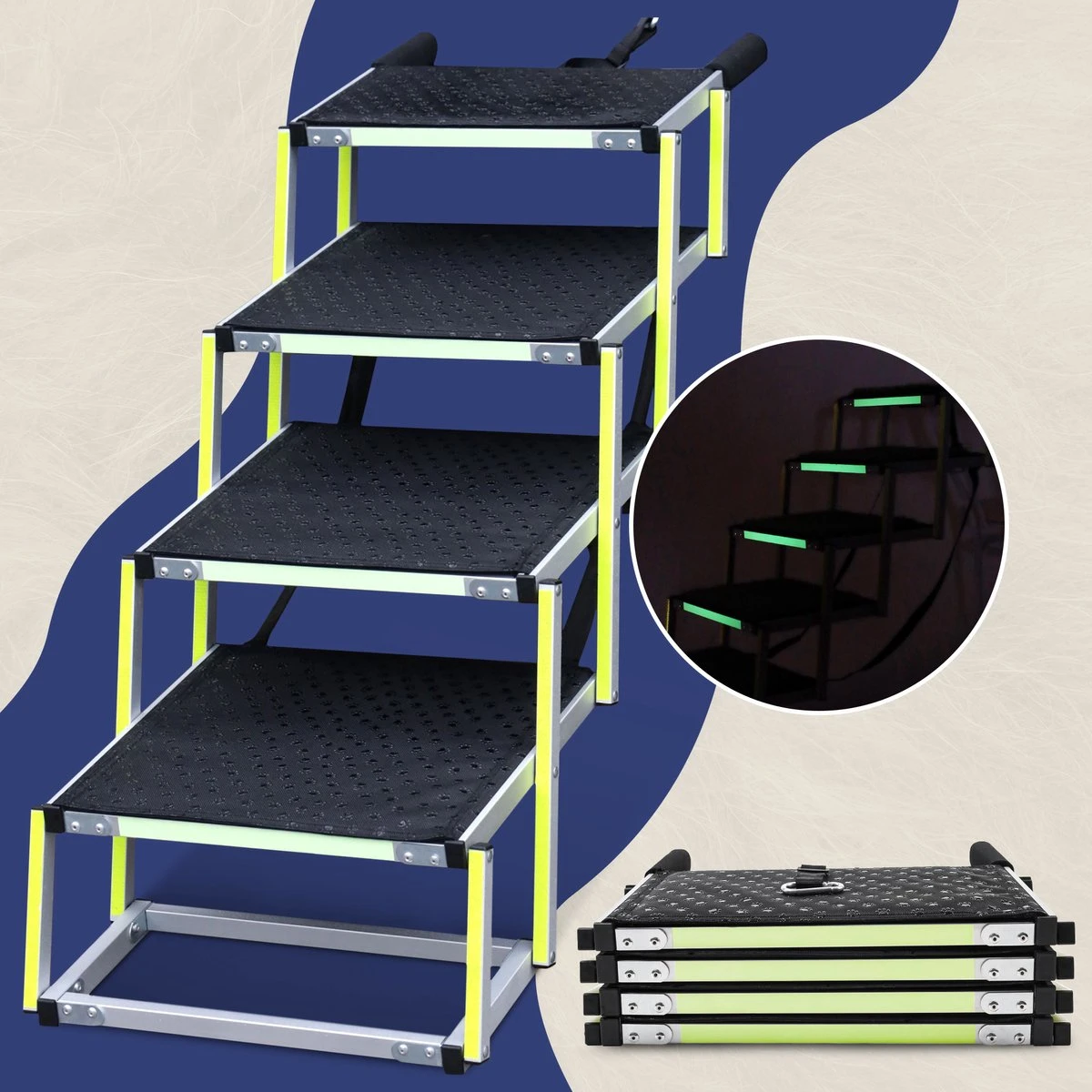 Hondentrap 4 treden – De stevige Auto Hondentrap met reflecterende veiligheidsmarkering