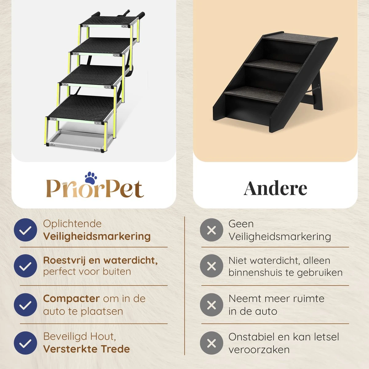WINKEL RISICOVRIJ: Bij PriorPet geloven we in eersteklas producten die het dagelijkse leven van uw dier een beetje aangenamer maken. We zijn ervan overtuigd dat u en uw hond onze hondentrap geweldig zullen vinden, dus elke bestelling bevat onze 30 dagen garantie en een volledige garantie van 2 jaar.