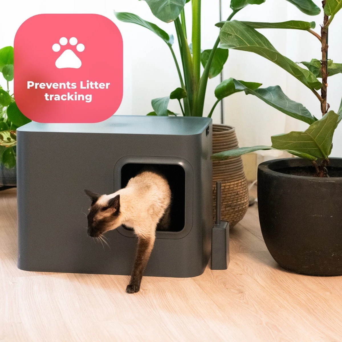 De gesloten kattenbak, het ingangsgordijntje en de scheidingswand geven privacy aan uw kat en bieden geborgenheid.