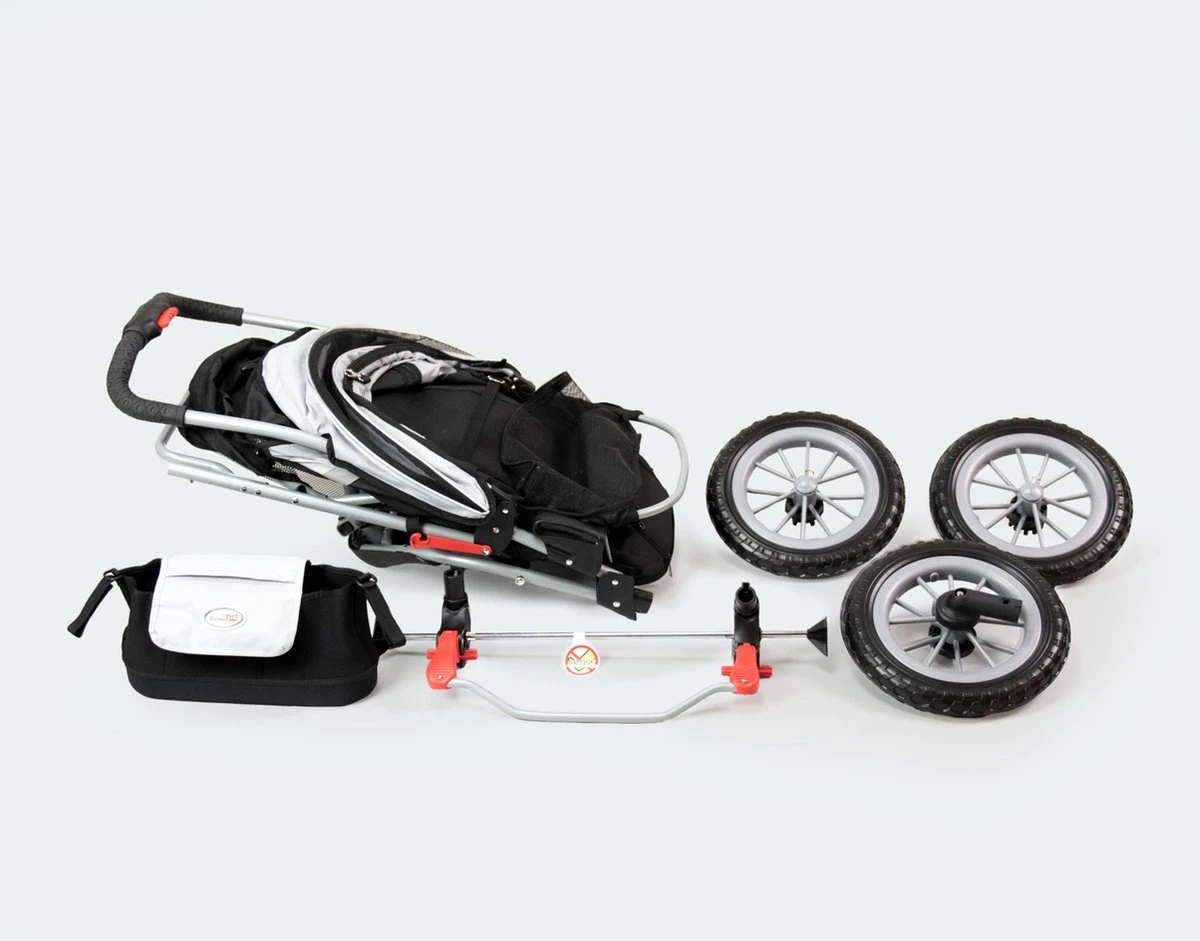 De InnoPet Comfort EFA ECO is de hondenbuggy die aan al uw verwachtingen voldoet. Zoals omschreven in de naam biedt deze hondenbuggy, met de 12 inch EFA-wielen, maximaal comfort voor u en uw huisdier. EFA is een duurzaam geproduceerd foam wat een sterk dempend karakter heeft en is daarom te vergelijken met het comfort van luchtbanden.. alleen kunnen deze banden niet lek gaan. U kunt het voorwiel fixeren waardoor deze buggy uitermate geschikt is voor het gebruik op onverharde wegen zoals bospaden.