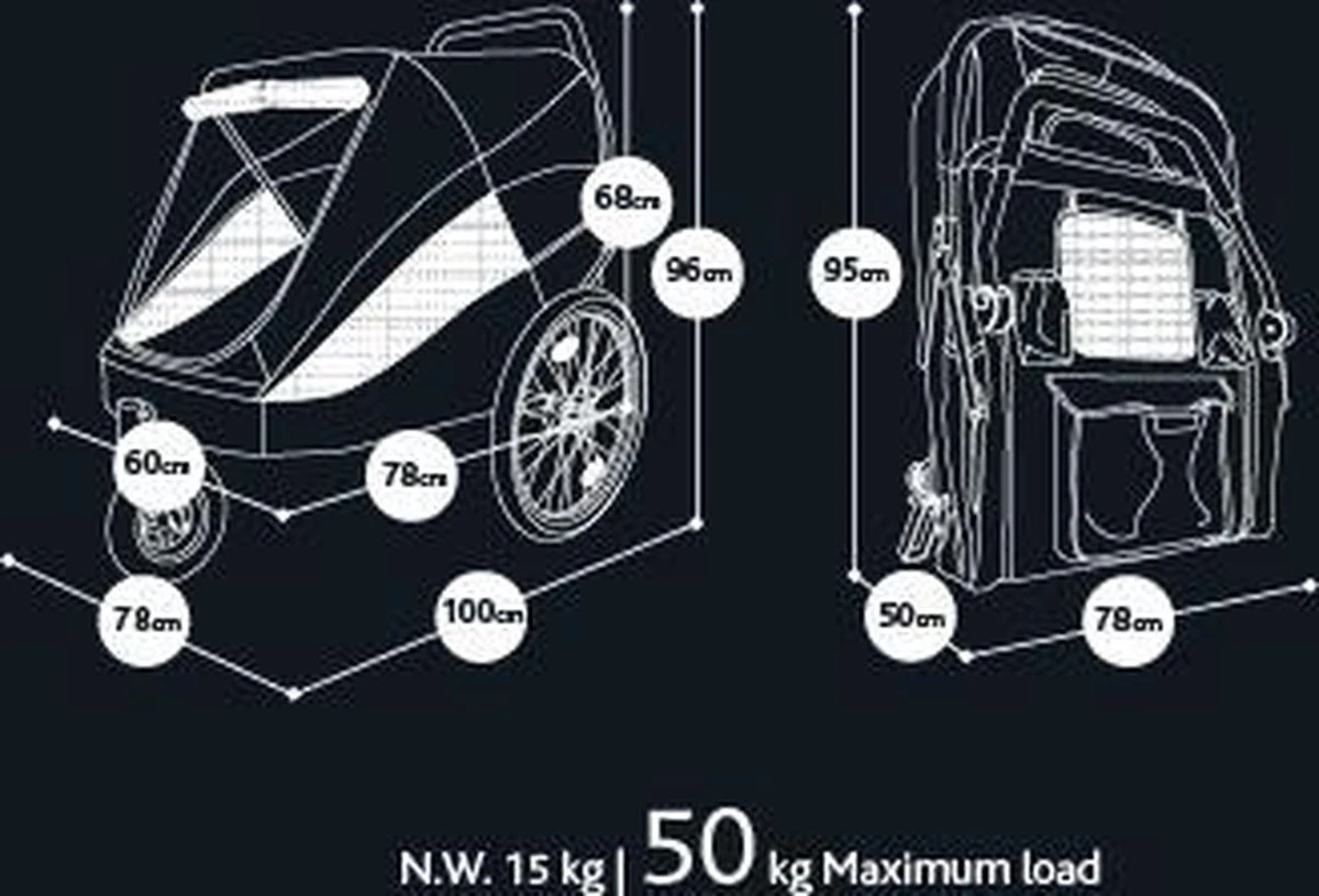 Let op! Deze InnoPet Hercules heeft dus alleen een voorbereiding voor een trekstang (een trekstang is optioneel later ook los bij te kopen). Mocht u deze buggy ook als fietskar willen gebruiken, dan schaft u de InnoPet Hercules 2.0 – Fietskar (tevens verkrijgbaar via bol.com) aan.
