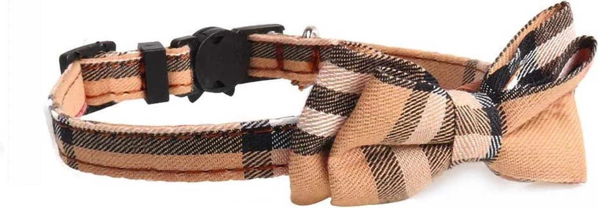 Stijlvolle klassieke halsband voor poes, kat of kitten met veiligheidssluiting, strik en belletje: