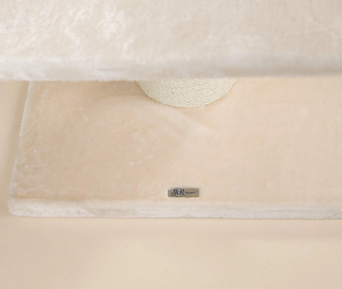 Krabpaal voor grote katten Maine Coon Lounge beige is zeer stabiel met zijn 20cm diameter dikke sisalpalen en verzwaarde bodemplaat van 60×60 en 4,5cm dik. Met enorme ligplek met uitneembaar kussen.