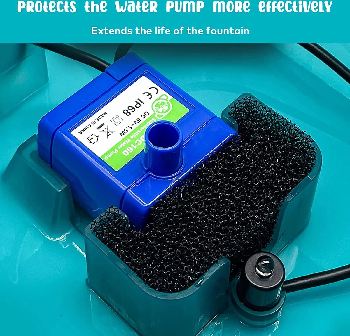 Uitstekende bescherming voor de pomp: de voorfilterspons kan de waterpomp effectiever beschermen en de levensduur van de fontein verlengen.
