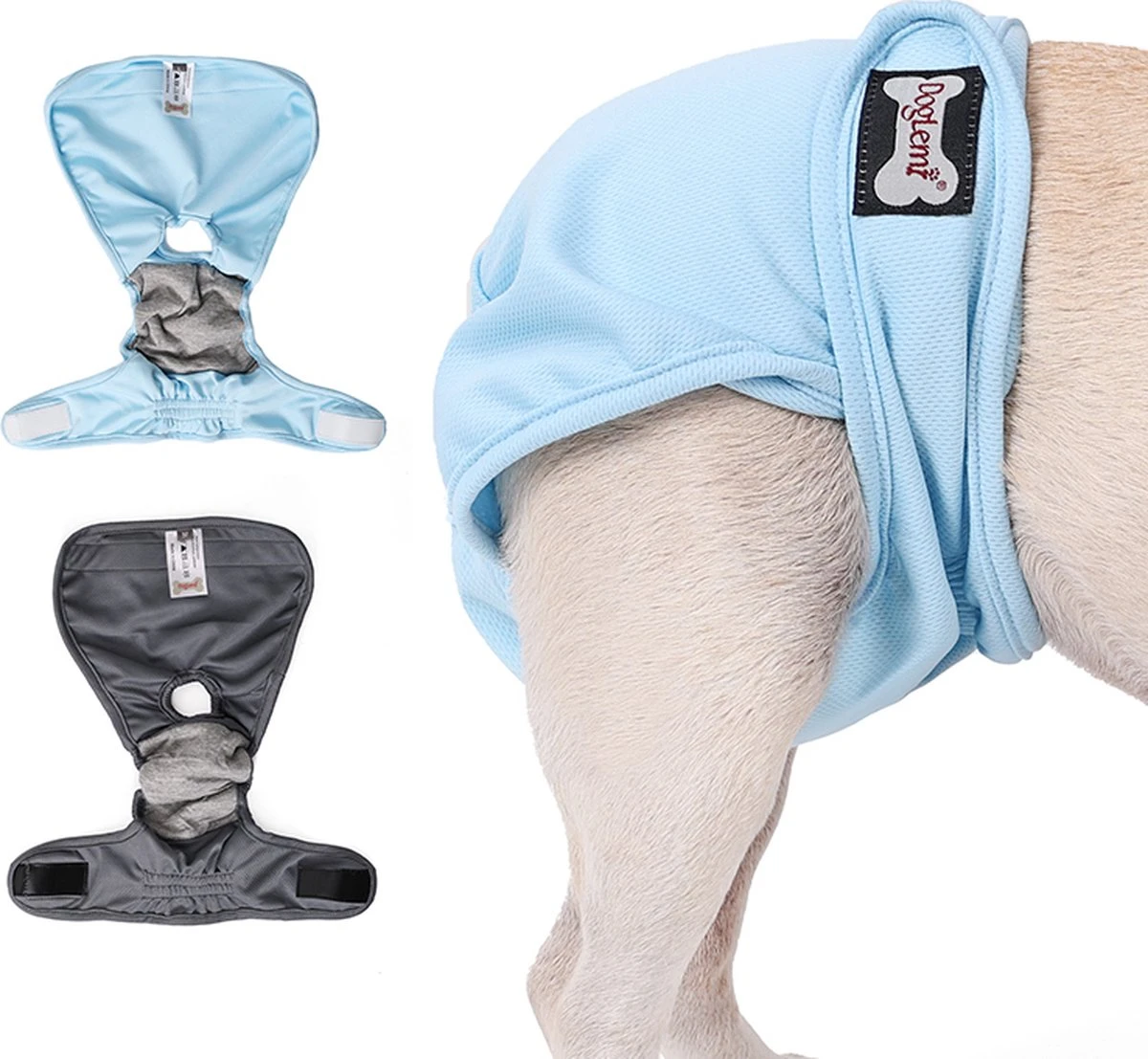 Om te voorkomen dat je hond overal in het huis druppelt, kan je dit hondenbroekje gebruiken.