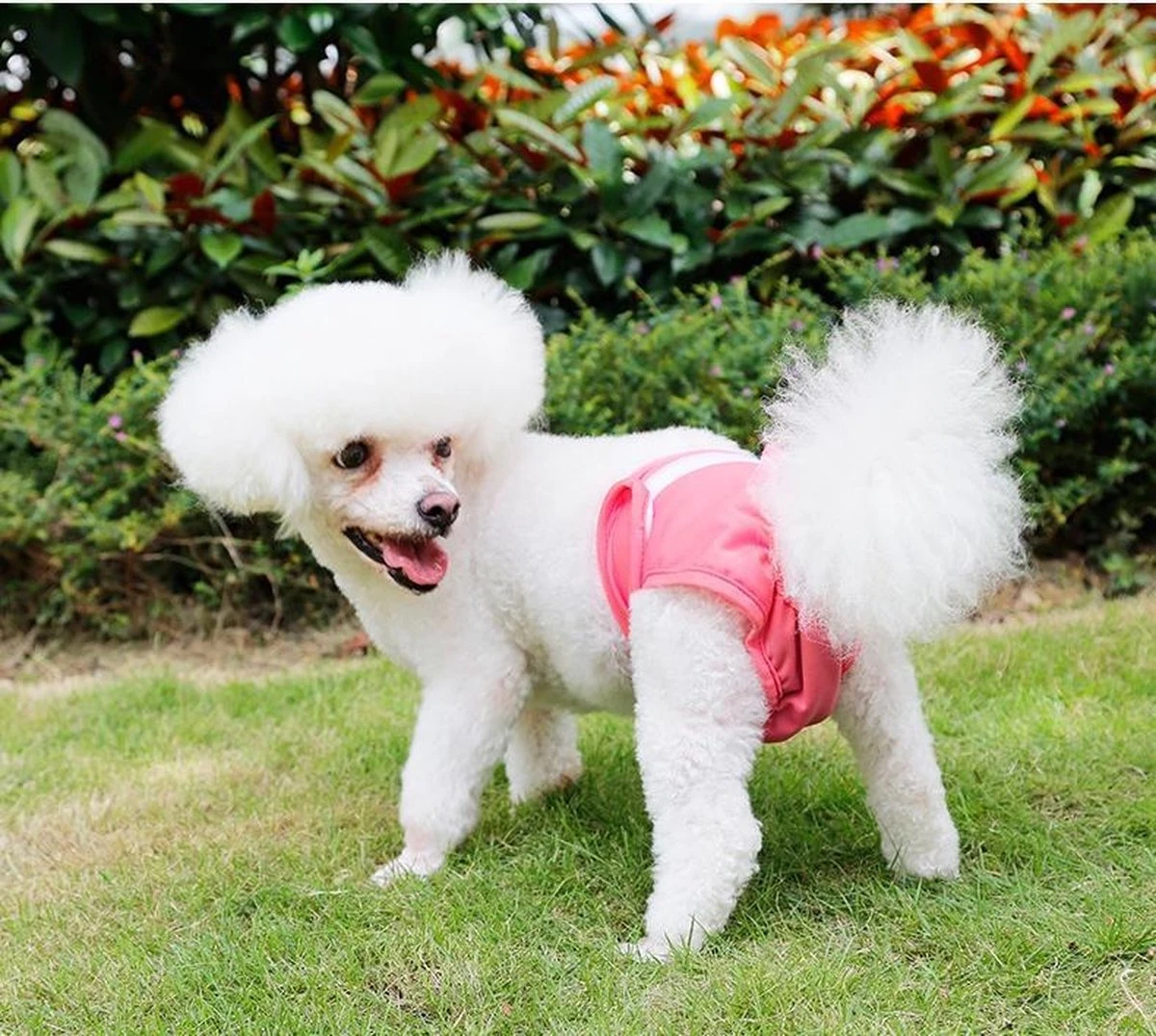 Om te voorkomen dat je hond overal in het huis druppelt, kan je dit hondenbroekje gebruiken.