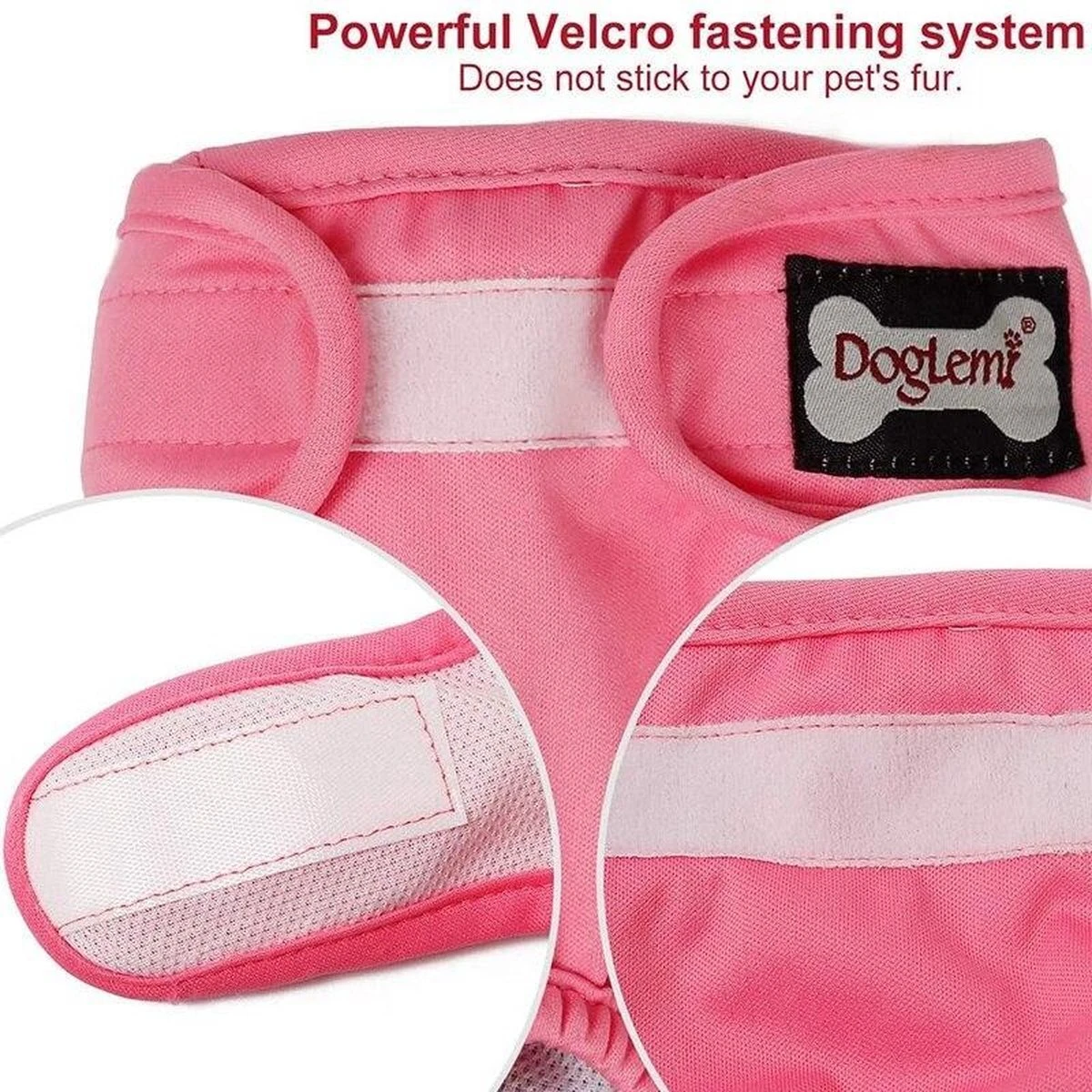 Daarnaast heeft het broekje een klittebandsluiting waardoor de omvang aanpasbaar is zodat deze goed blijft zitten en je hond er geen last van heeft.