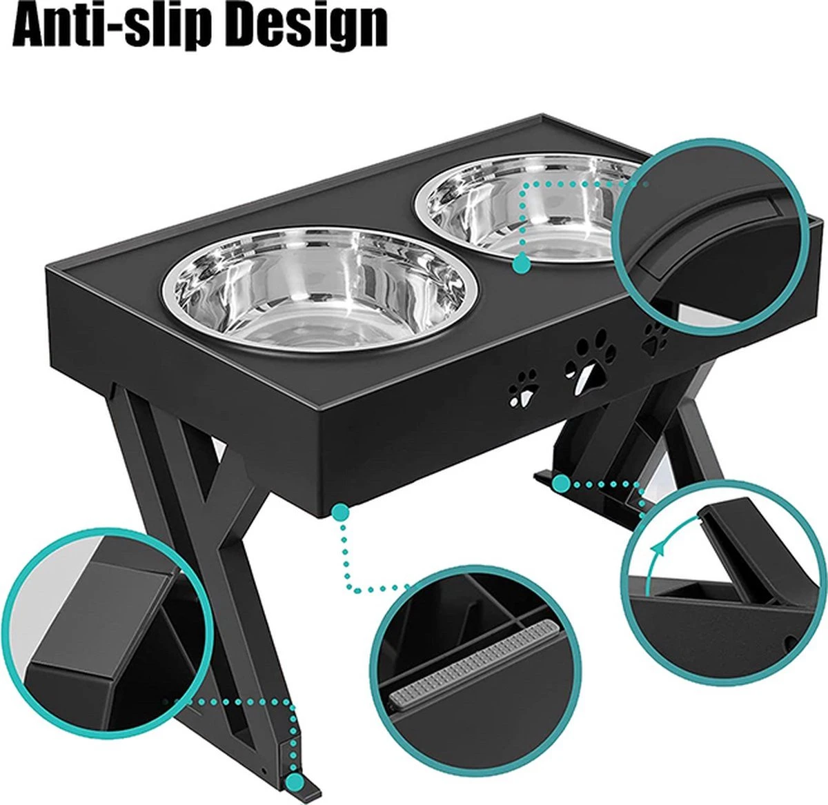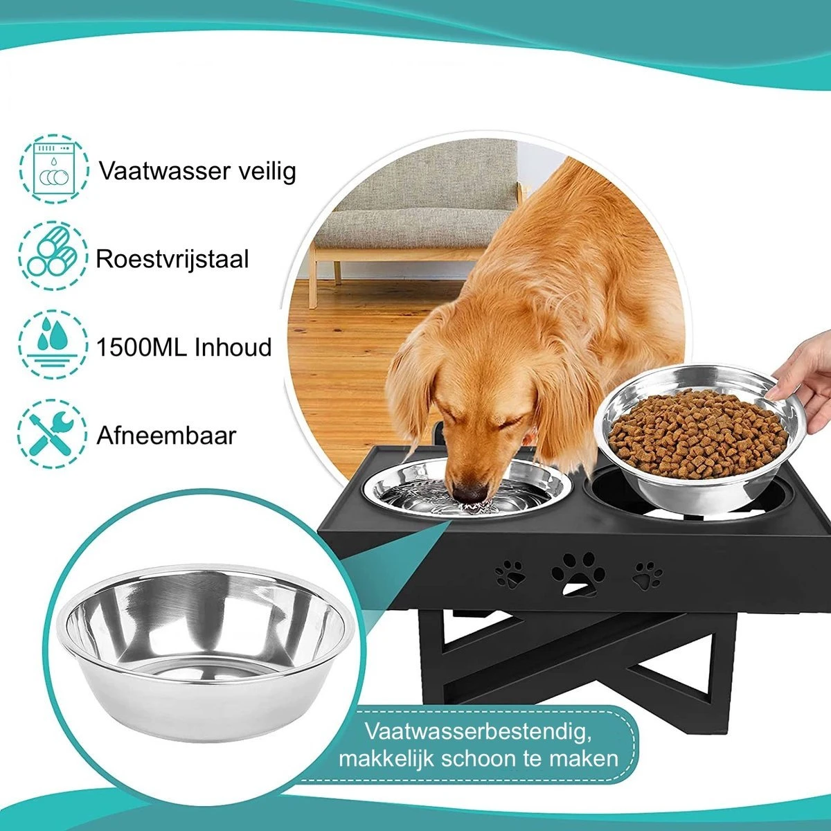 Bij aankoop ontvang je niet alleen 2 hondenbakken, maar hij wordt ook geleverd met een handig standaard. Het standaard is gemaakt van kwalitatief hoogwaardig RVS en is zeer stevig. Dit in combinatie met de antislip pootjes resulteert in optimale stabiliteit, en voorkomt dat hij onnodig verschuift.