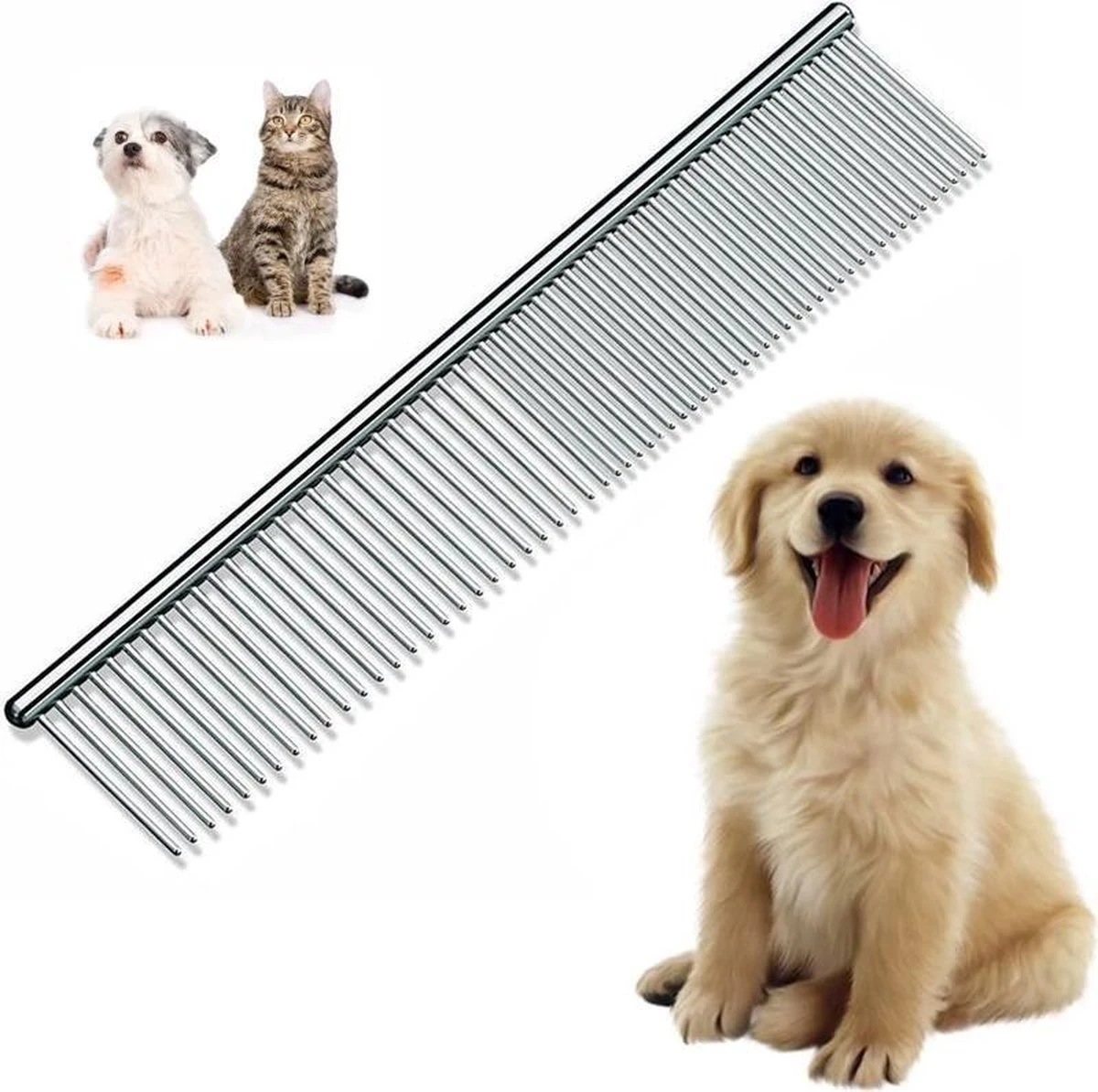 Multifunctioneel – Door de verschillende mogelijkheden die je met deze kam hebt kun je al je huisdieren met een kam pijnloos en efficiënt kammen. Erg robuust en slijtvast waardoor hij jaren lang te gebruiken is.