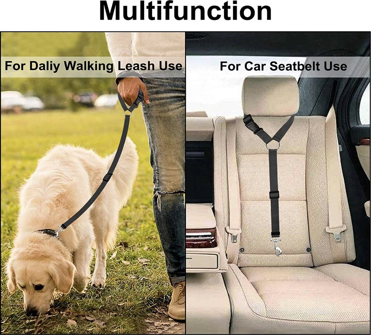 - Praktisch: onze duurzame veiligheidsgordel voor hondenhoofdsteunen kan niet alleen worden gebruikt voor de hoofdsteun van een auto, maar kan ook worden omgezet in een traditionele handriem wanneer u hem nodig hebt. Bovendien is de autogordel voor honden gemakkelijk om de huisdieren aan een boom of een andere sterke paal te bevestigen om huisdieren en andere mensen veilig te houden.