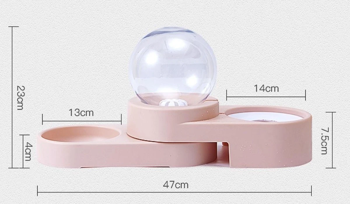 Deze stijlvolle voer- en water bak is een must have voor iedere dierenvriend, maar ook voor degene met het oog voor een stijlvol interieur. Het combinatie systeem zorgt ervoor dat deze dispenser zowel een voerbak als drinkbak is voor honden en katten. Deze voer en drinkbak combinatie heeft een ingebouwd systeem waardoor het water automatisch aangevuld wordt door het bijgeleverde waterbol. Dit heeft zowel voordelen voor u als uw trouwe viervoeter.