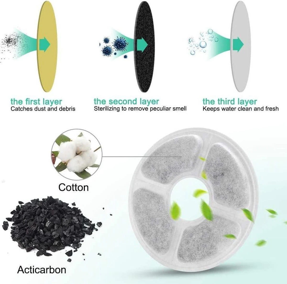 Spoel het filter voor gebruik grondig met water, vervang de filters elke 1-2 weken om het water vers te houden.