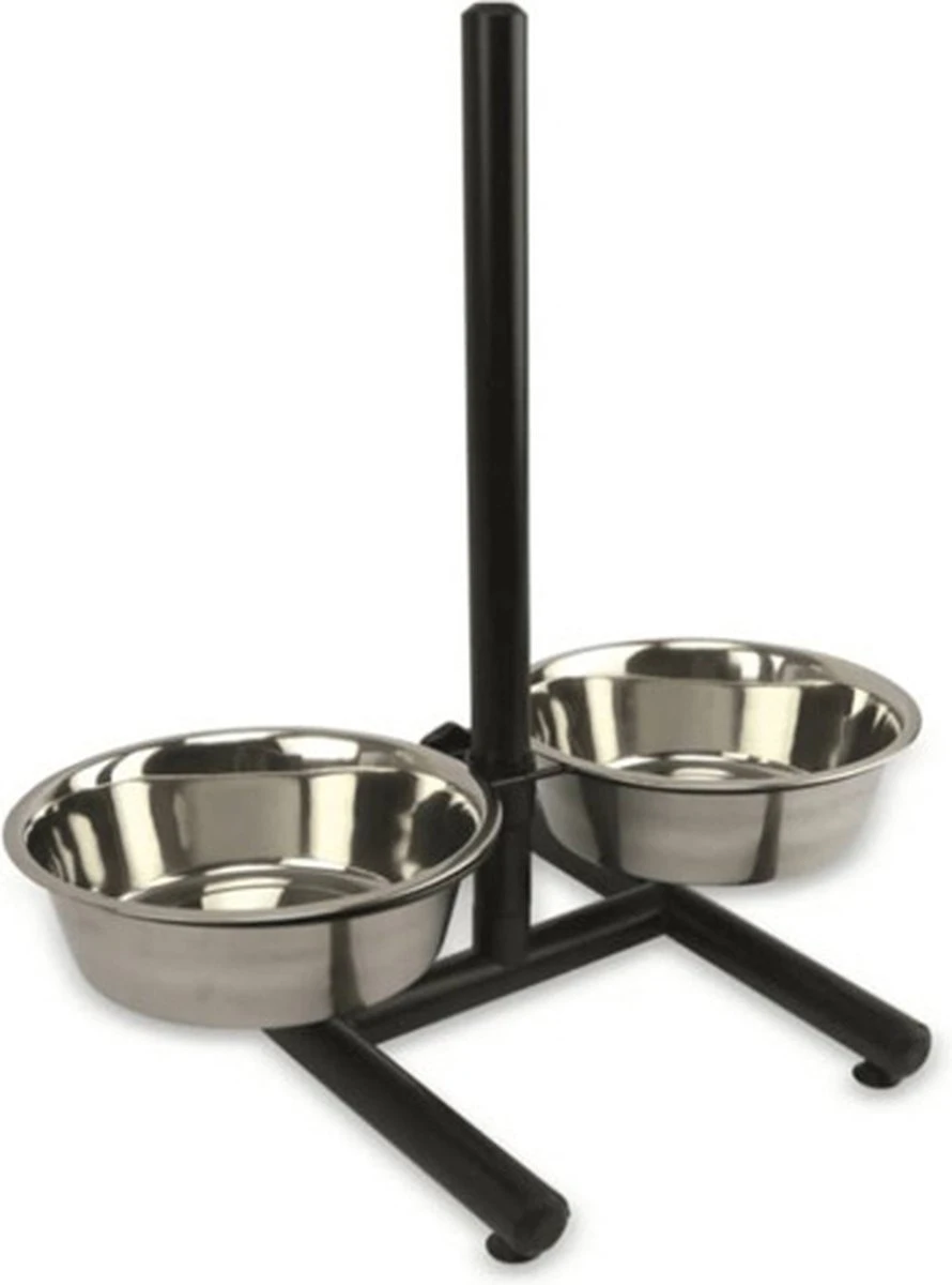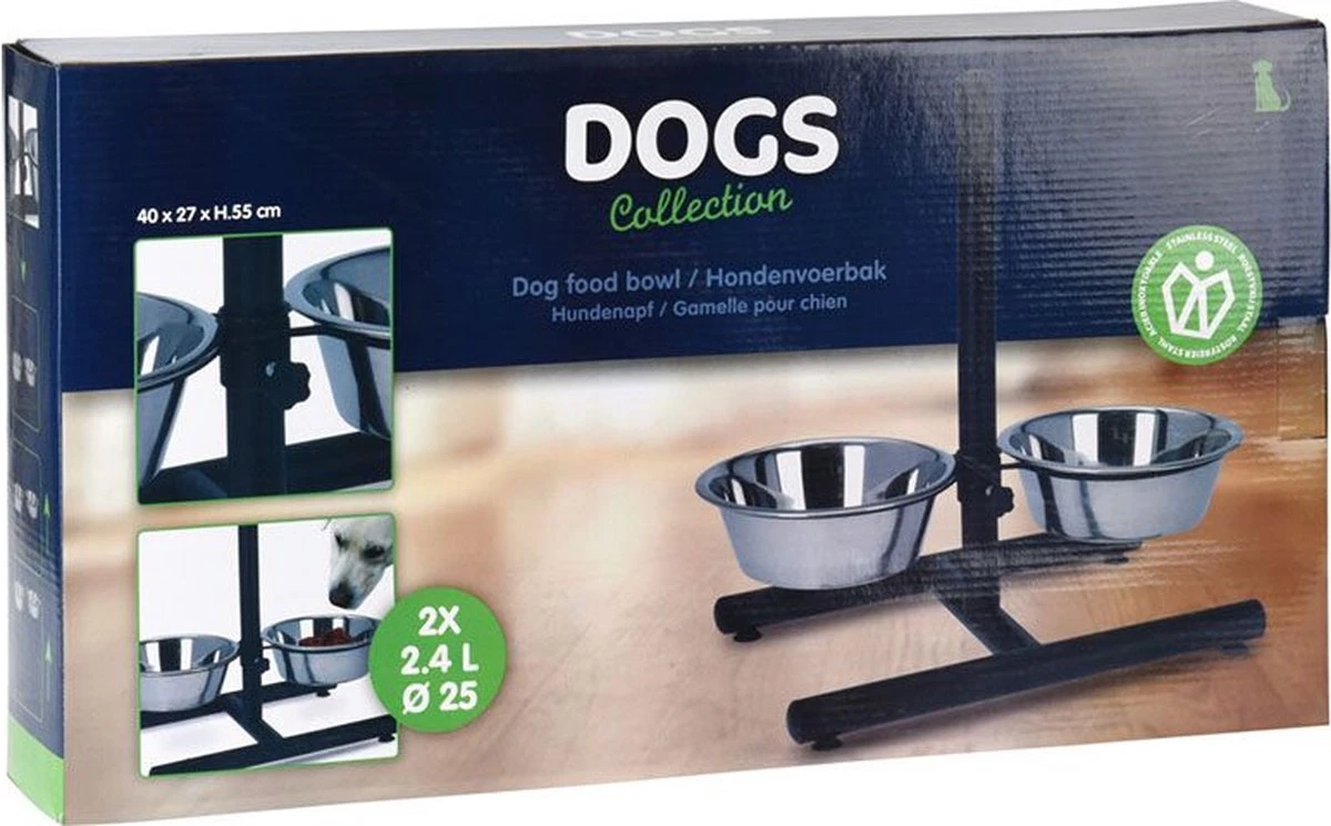 De hoogte van de bakken is verstelbaar, dus geschikt voor kleine en grotere honden.