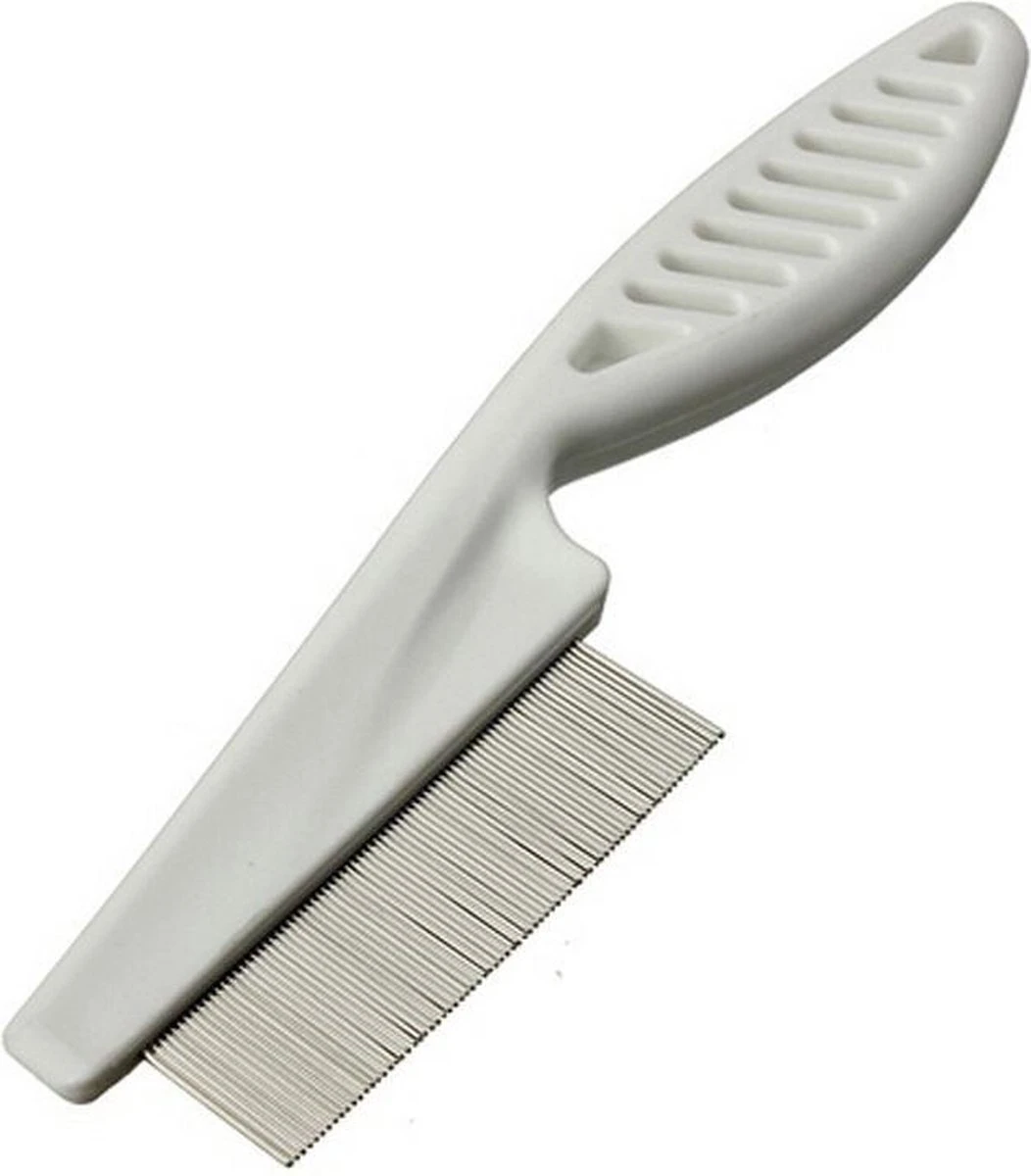 Voor een grondige velverzorging. Met deze kam wordt niet alleen ongedierte (zoals vlooien) verwijderd, maar ook neten worden door de dicht op elkaar zittende pinnen weg gekamd.