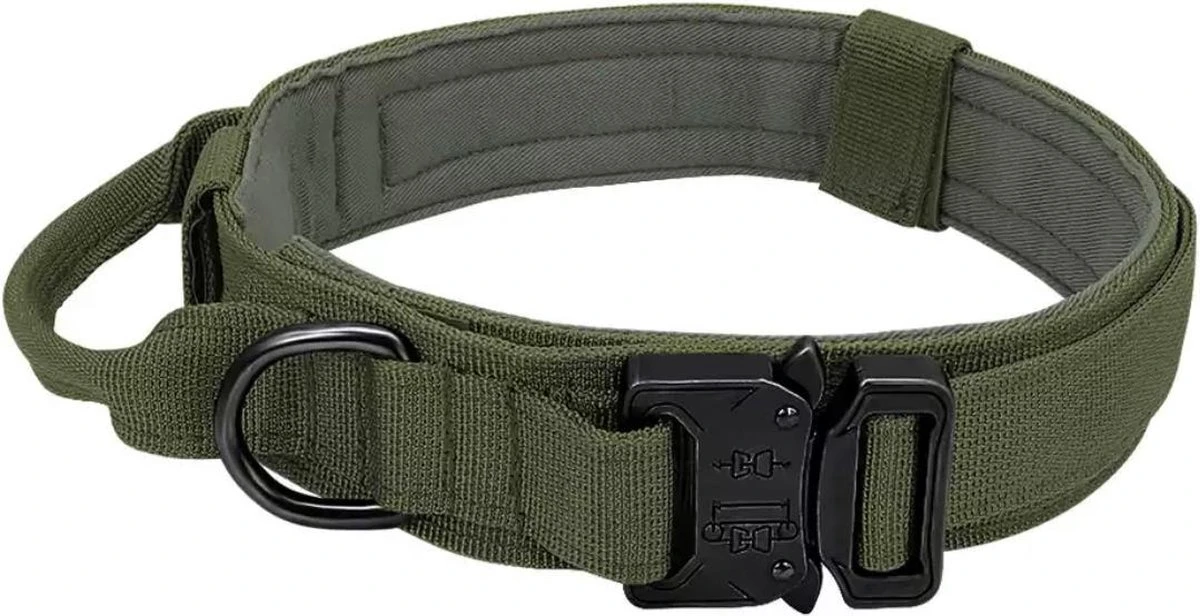 Militaire Tactische Halsband Duitse Shepard Medium Grote Hond Halsbanden Voor Walking Training Duarable Halsband Controle Handvat- Donkergroen olijf bruin- L 42-54 CM