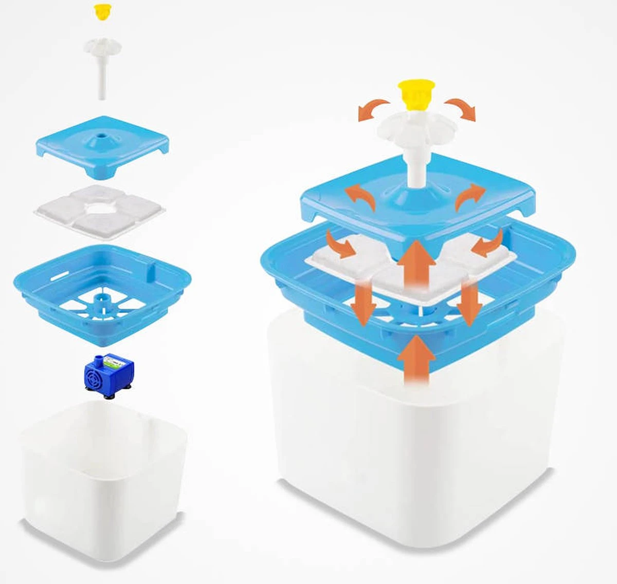 Onze drinkfontein bied een 3 laags filter systeem aan. Dit betekent dat het water voor je diertje altijd zo zuiver zal mogelijk zijn. Dit is allemaal mogelijk door de 3 stappen; Het filteren van haar, verwijderen van chloor/metalen en uiteindelijk verbetert het de smaak. Je huisdier zal genieten met elke slok.