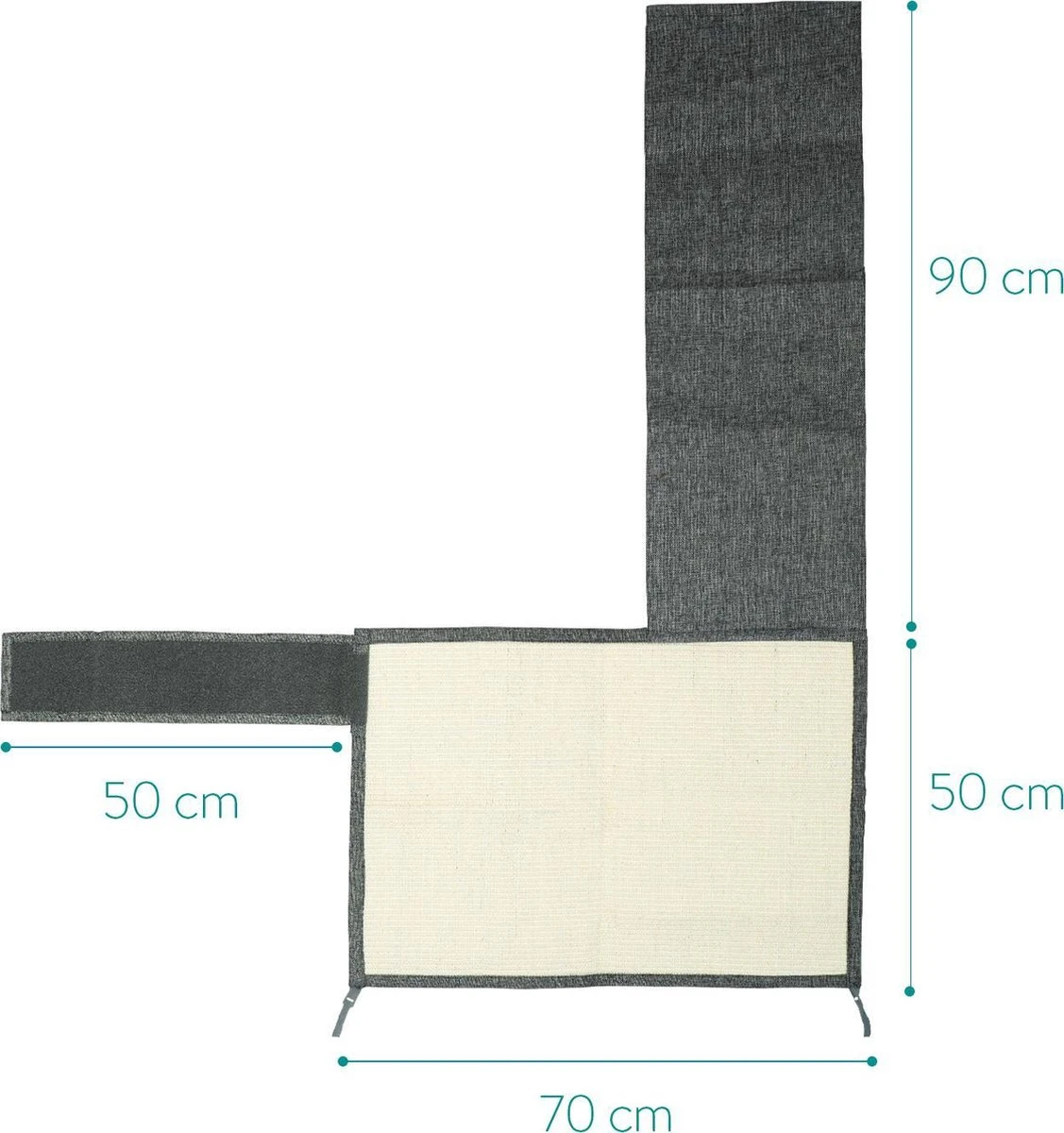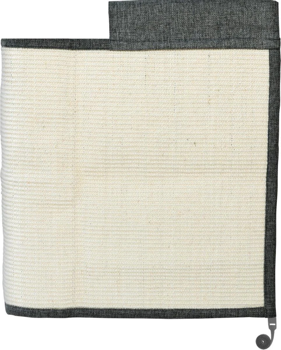 - KLAUWVERZORGING: De ene helft van de mat is bedekt met sisal en de andere helft is van stof. Je plaatst hem over de armleuning en stopt de stoffen kant onder het zitkussen. Nu kan je kat zijn klauwen scherpen, terwijl jouw bank of stoel beschermd is.
