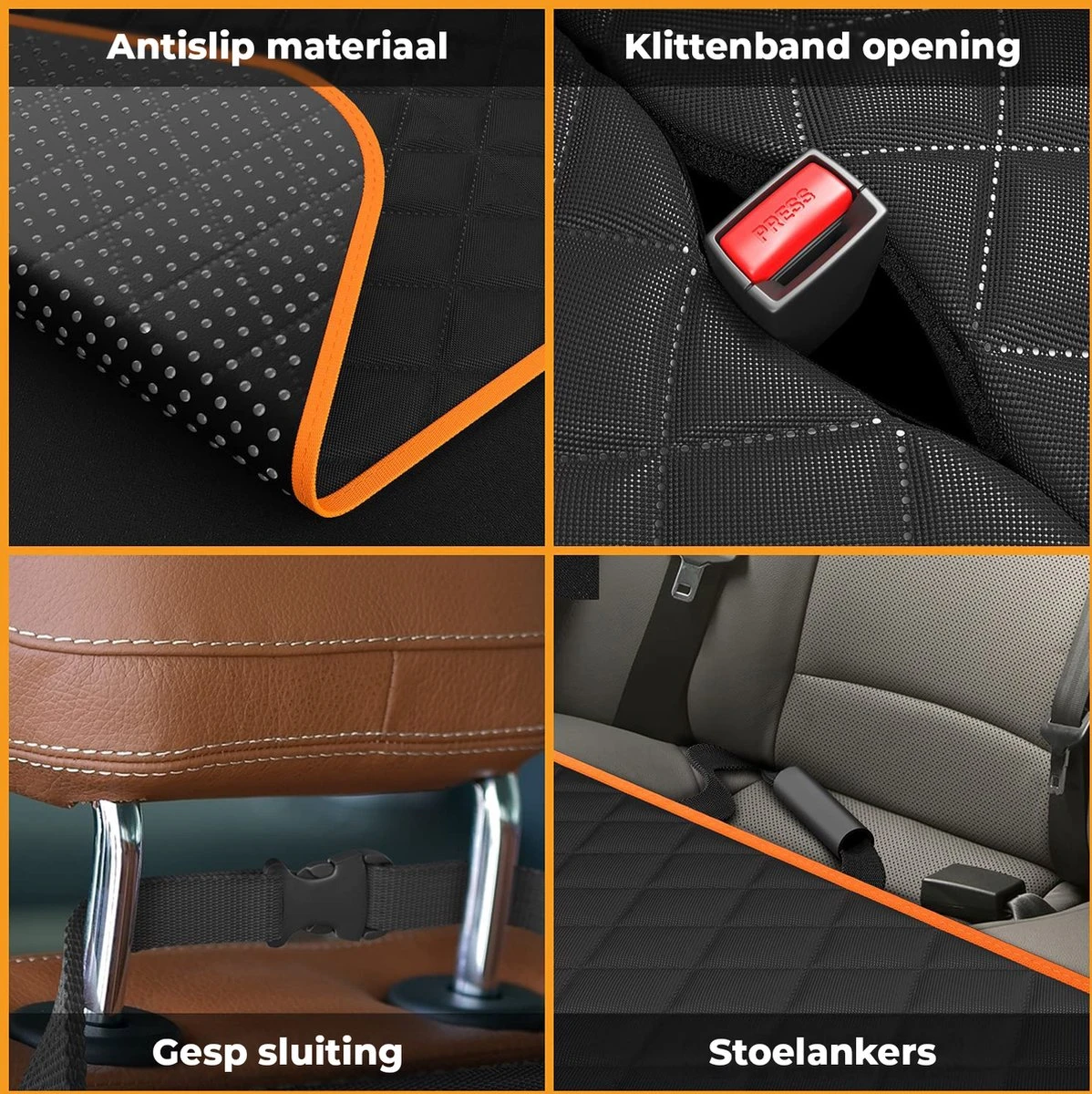 De 4 zware hoofdsteunankers en 2 stoelankers houdt de achterbankhoes stevig op zn plaats, zodat je huisdier niet wegglijdt en valt. (zelfs tijdens de meest hobbelige ritten).