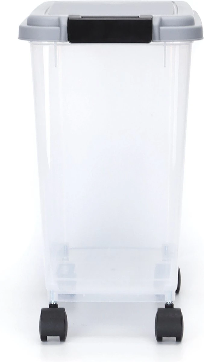 Mooie stevige voorraadbak op zwenkwielen. Handig voor opslag van jouw honden of kattenbrokken. Inhoud van 20 liter. Let op: Dit staat gelijk aan 7.2KG voer